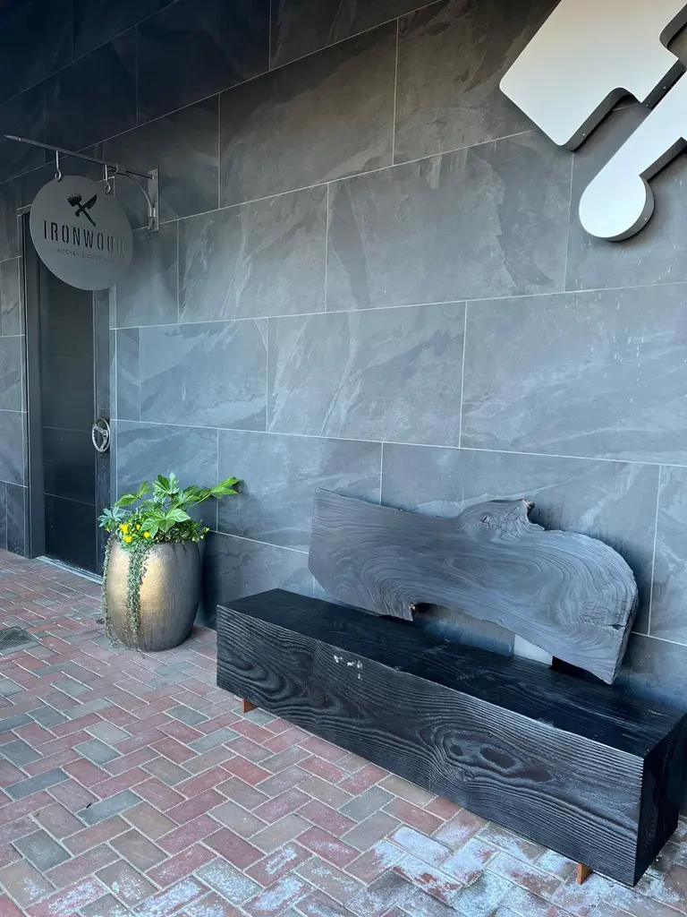 Shou Sugi Ban Wood Bench Pine Corten Steel With Live Edge Back By Alabama Sawyer