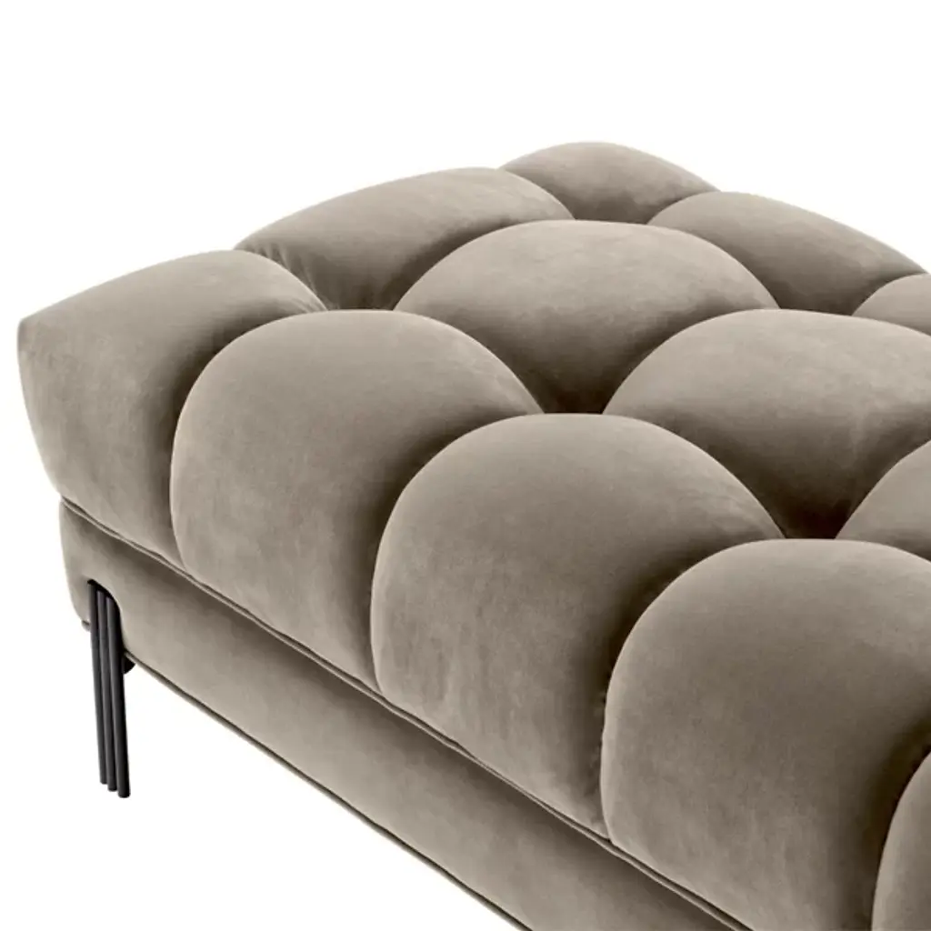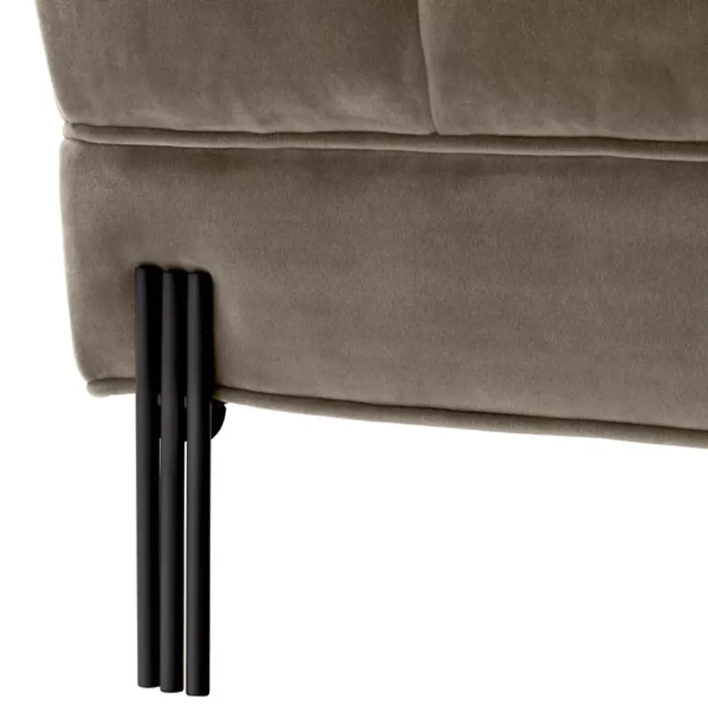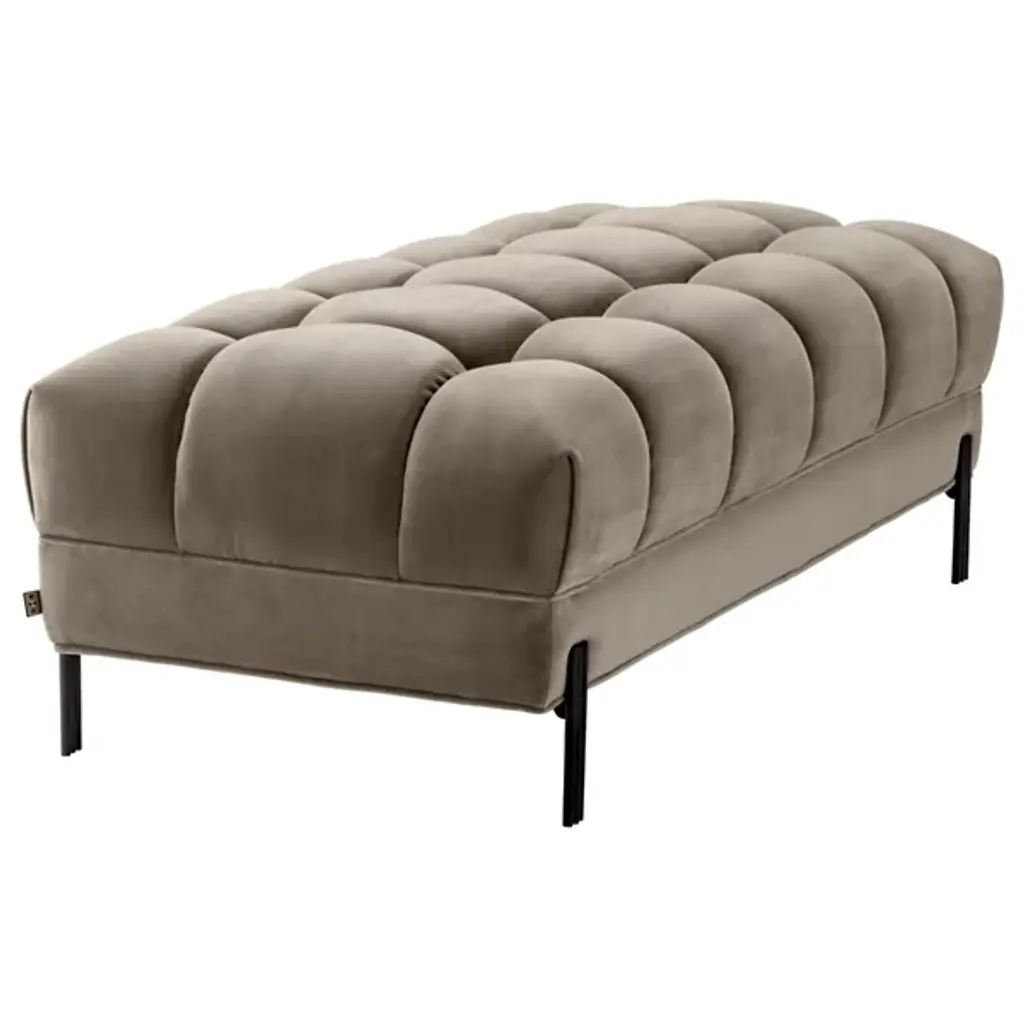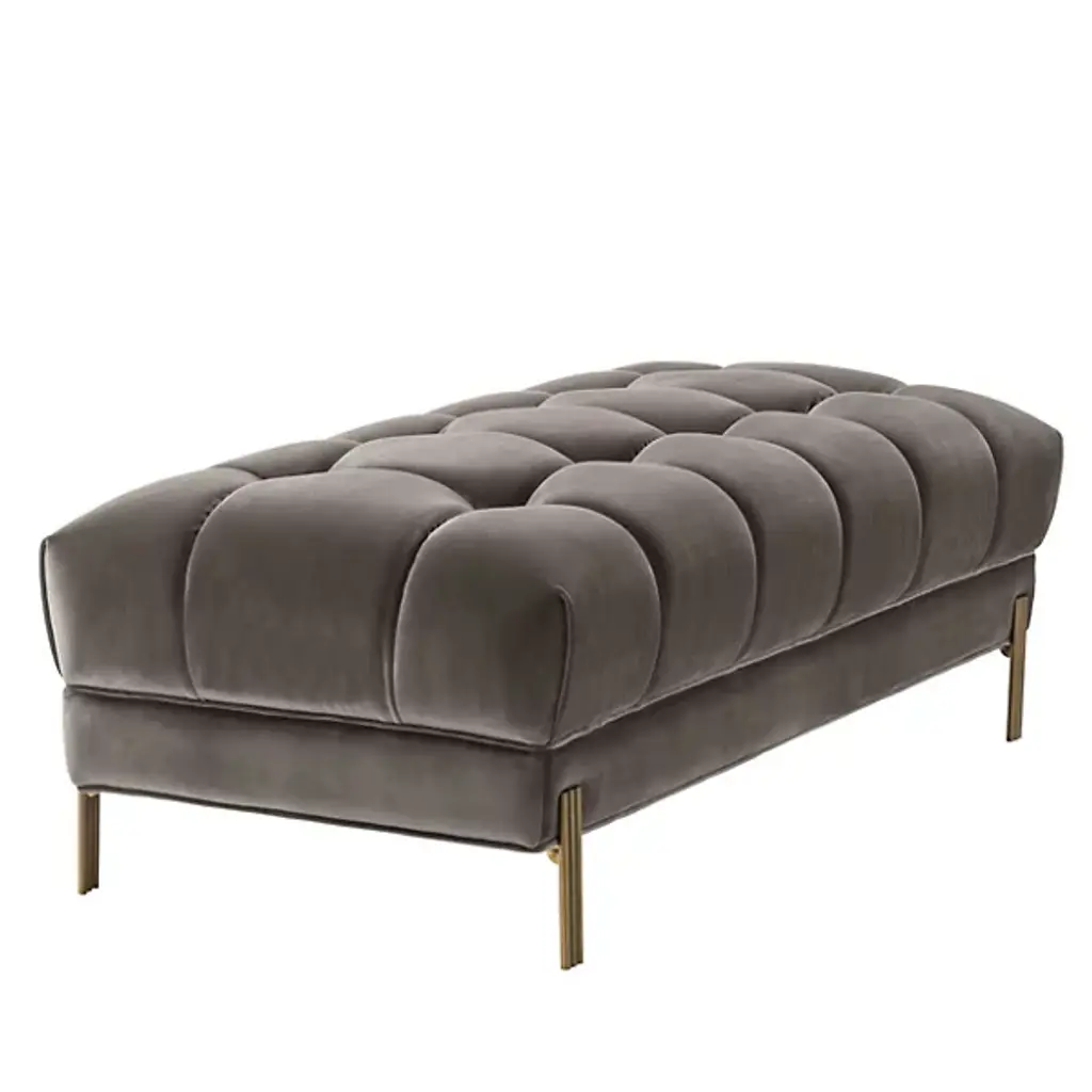 Bring art deco elegance to your space with the Sienna Bench from Eichholtz. Enveloped in lush polyester upholstery, this bench features a metal frame with a geometric silhouette. The upholstered cushions have a refined shape that is somewhat square yet softly rounded at the edges. Together, the cushions create a gracefully curved seating space defined by pronounced seams. Place Sienna at the foot of your bed for a glamorous accent, or use it to add a bold sense of style to your entryway.