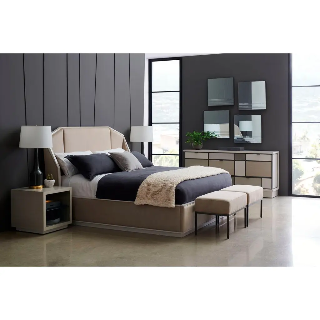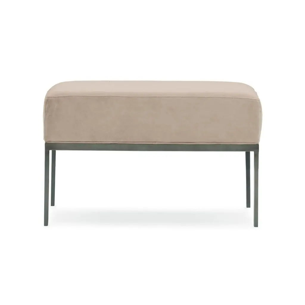 Destined to be remembered, this expressive bed bench is as functional as it is fashion-forward. Its upholstered seat is plush yet supportive and framed in metal with a Zinc Oxide finish. Pencil legs give it a modern vibe while providing solid strength. Place one or two at the foot of the bed or anywhere you want a bit more function and a lot more style.Dimensions: 30" W x 18" D x 19" H Fabric - 2579-75CC-P Performance
