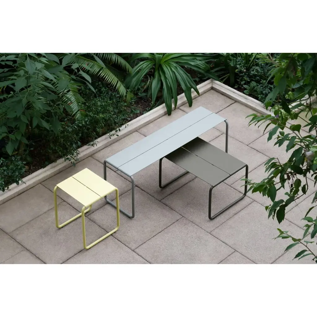 Nine's Sine bench is an elegant stainless steel garden bench that stands out with its tubular, rectangular frame, giving it a sleek appearance. The seat of the bench is crafted from thin metal sheets with gaps that allow for quick drying after a downpour. Designed by Note Design Studio from Sweden, the Sine outdoor furniture line was inspired by the gentle undulations of a sine wave, a motif that resonates throughout the collection's frames. The airy design also pays homage to elements of classic Swedish garden furniture. Launched in 2024, the Sine patio furniture integrates seamlessly into various settings, from home gardens and summer cottages to restaurant terraces. Its stainless steel construction ensures easy maintenance and guarantees longevity and suitability for diverse climates.