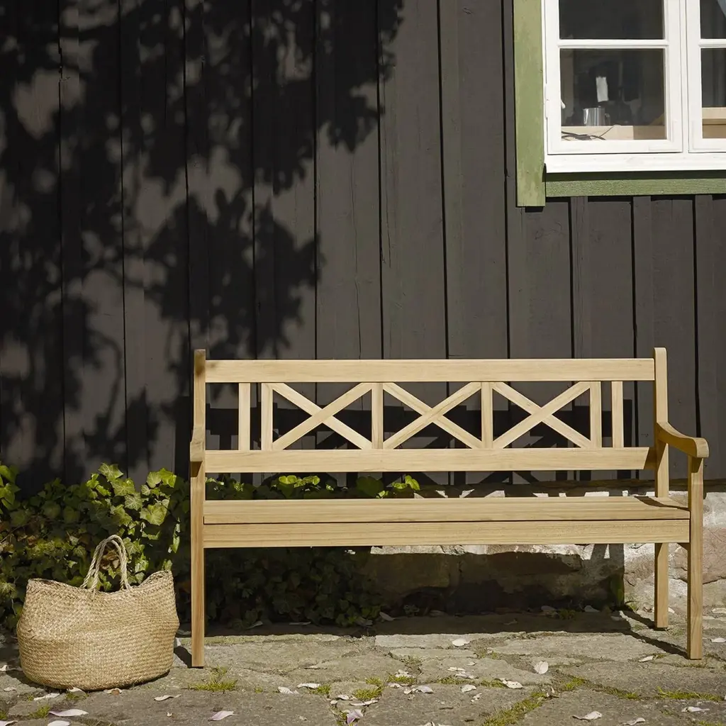 Solidly elegant in its appeal, Skagen's iconic namesake bench references the northern Denmark area which was home to many of the country's most famous painters and writers in the late 19th century. The timeless arrangement of the X-pattern backrest and the sturdy lines bespeak the Nordic heritage of functional excellence and longevity. Crafted in FSC-certified solid teak and left untreated, the bench will eventually weather to a beautiful silvery grey.