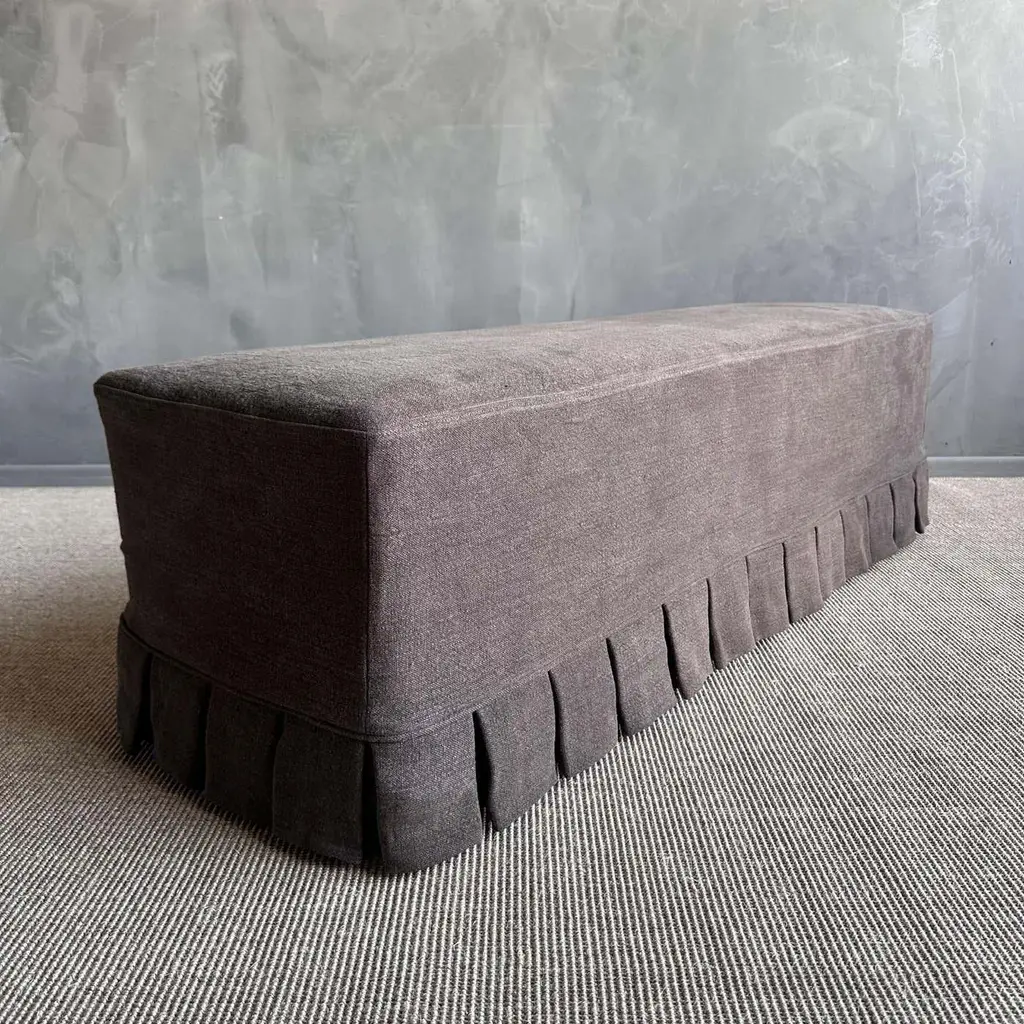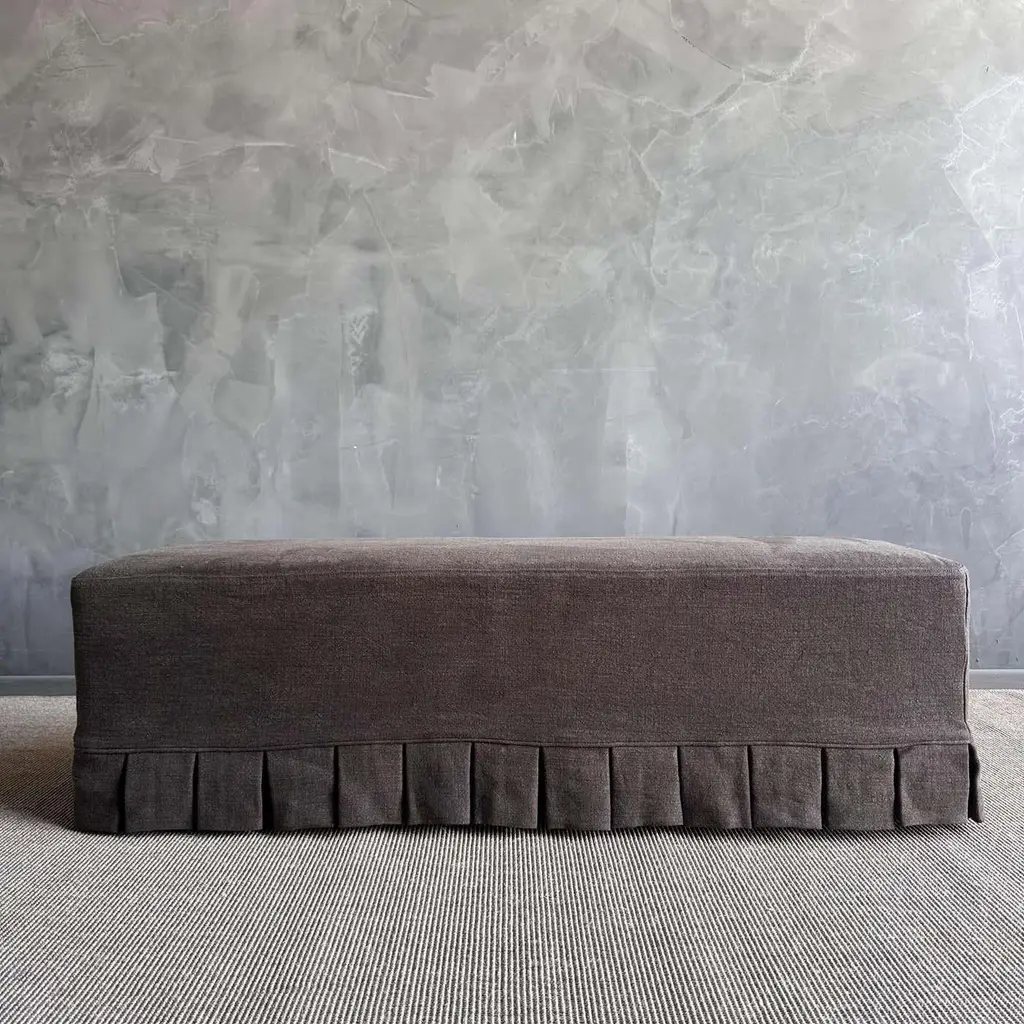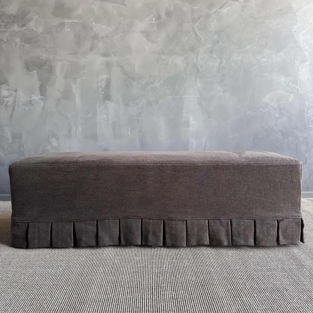 Slip Covered Bench In 100% Pure Linen With Pleated Skirt Detail