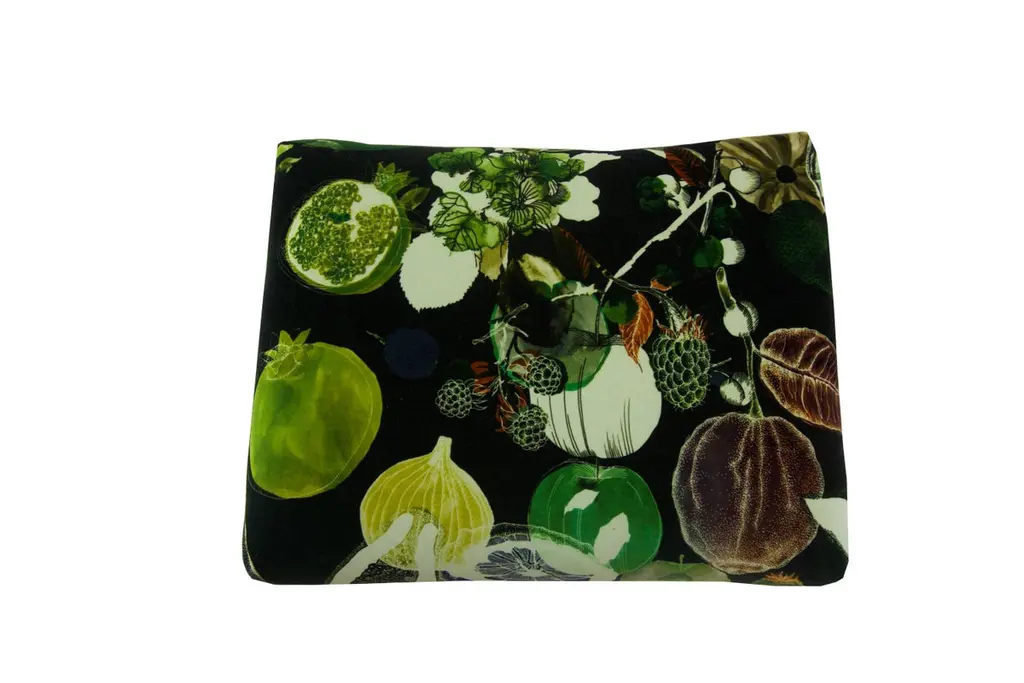 Small Bench In Black Velvet With Fruit Pattern, Custom Only