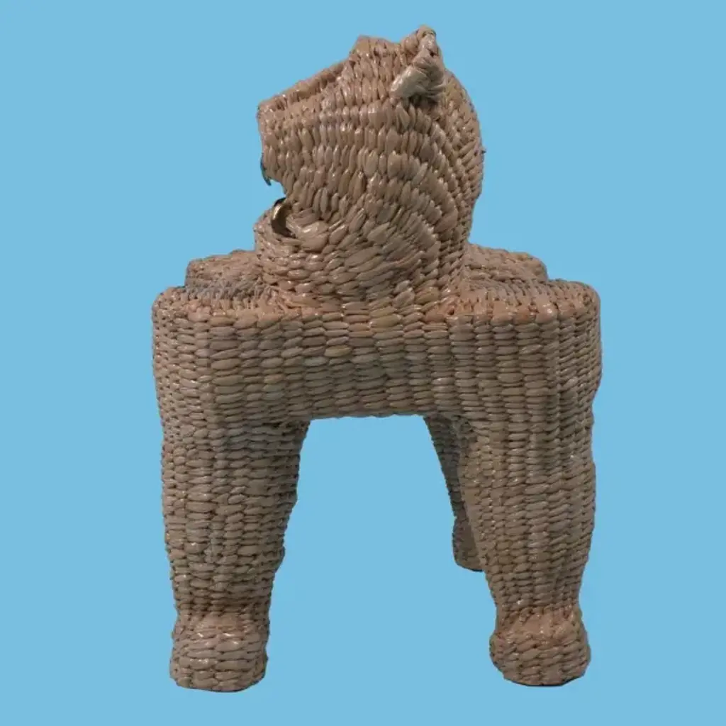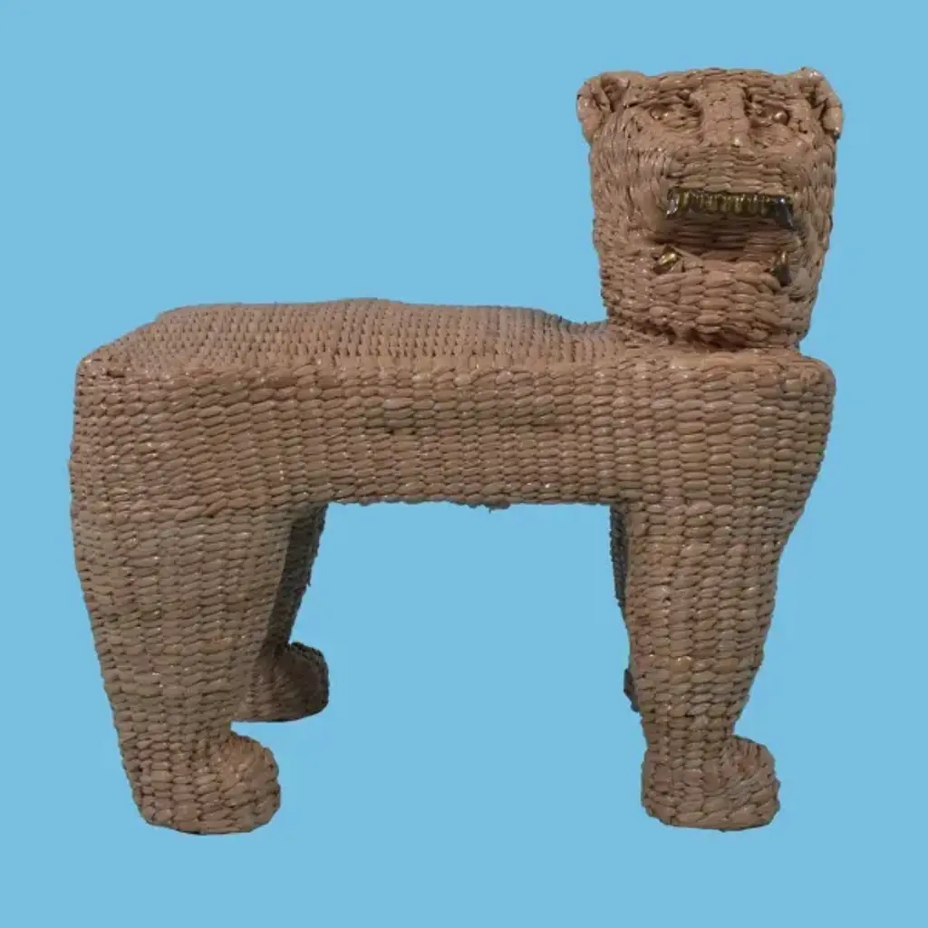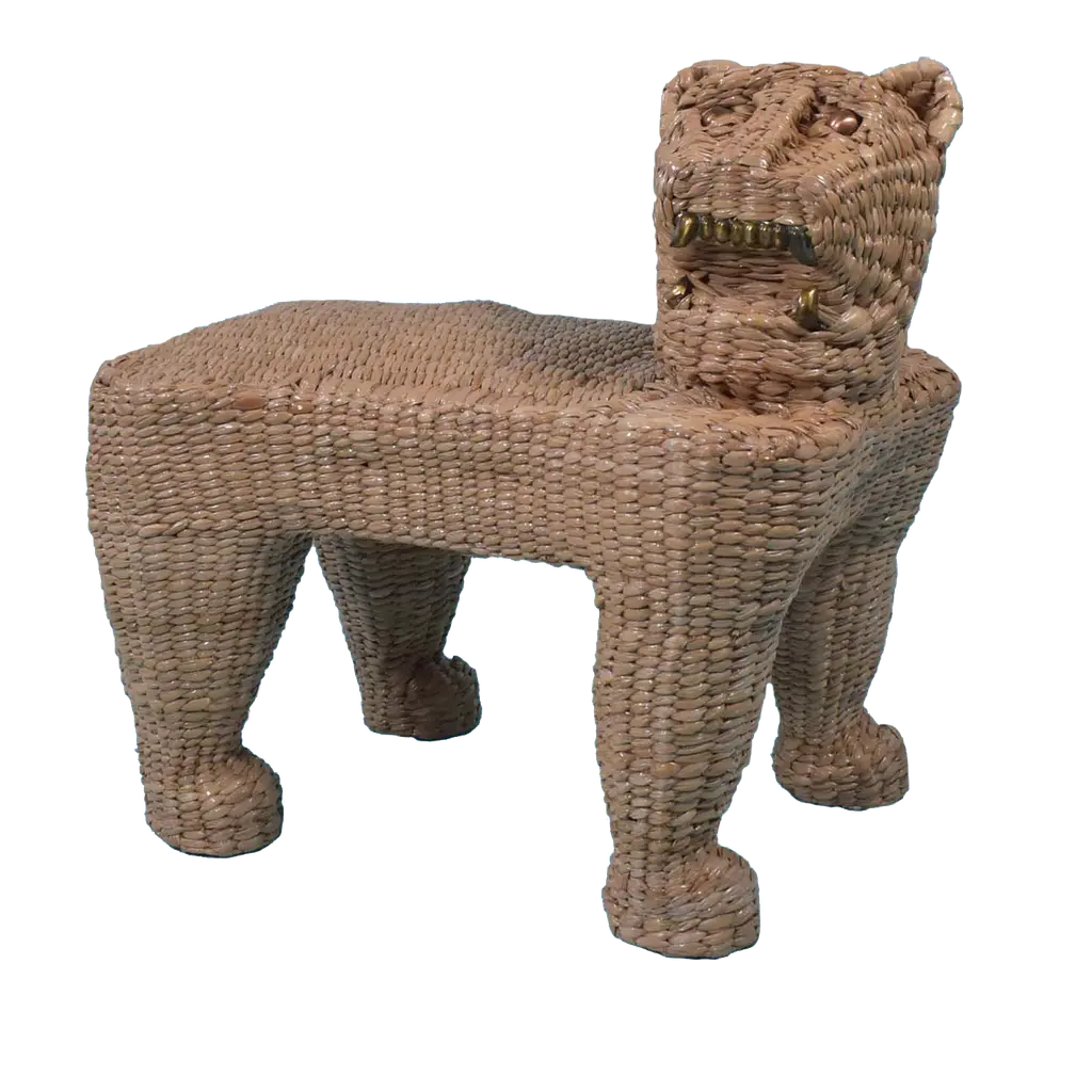 Small Jaguar Bench by Mario Lopez Torres There are minor imperfections to the hand-made woven rattan. Signed 1974 . (See Photos)