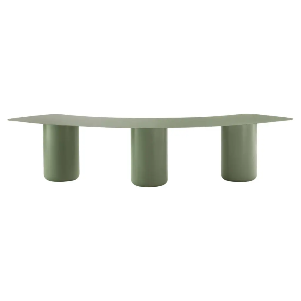 Small Olive Green Curved Bench by Coco FlipDimensions: D 65 x W 165 x H 42 cmMaterials: Mild steel, powder-coated with zinc undercoat. Weight: 42 kgCoco Flip is a Melbourne based furniture and lighting design studio, run by us, Kate Stokes and Haslett Grounds. We work closely with local craftspeople and manufacturers to create playful products with depth of character.Coco Flip produces character-rich furniture and lighting, in Naarm (Melbourne), for design conscious homes worldwide.Founded in 2010 by Kate Stokes and Haslett Grounds, the studio is inspired by ideas, relationships and materiality. Their designs imbue commercial and residential spaces with personality and warmth. Each distinctive piece is manufactured locally by a collective of skilled craftspeople.Coco Flip is proud to be part of a community that values quality Australian design.