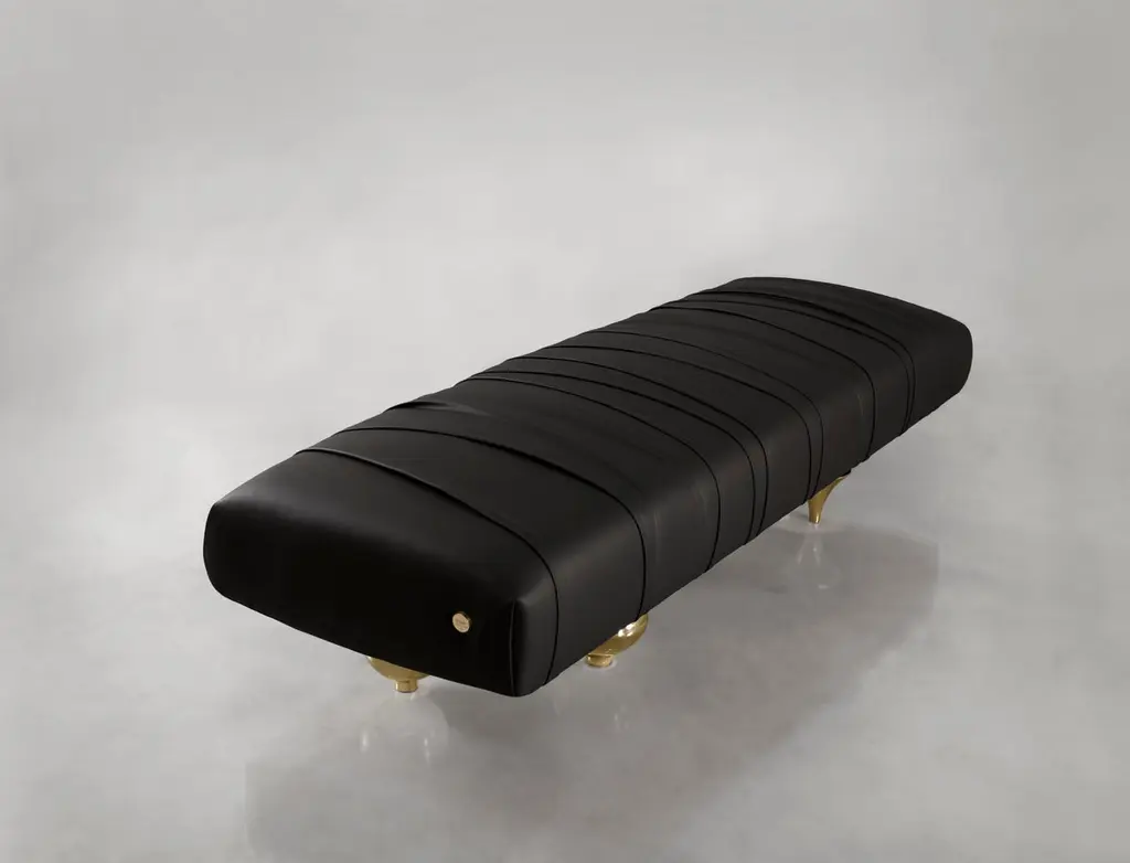 Small Panca Bench by Il Pezzo MancanteDimensions: W 140 x D 50 x H 46 cmMaterials: Upholstery: fine quality leather or velvet.Brass casting base: satin brass / bronze / gold / nickel.Weight: approx 43 Kg Il Pezzo Mancante ("The Missing Piece") was born in 2010, created by Cosimo Terzani and Barbara Bertocci. Inspired from their passion for quality raw materials and an innate love for their homeland, Tuscany, they create a world made of authenticity and vision in which you can rediscover an extraordinary rich artisan culture. It’s a world that celebrates the beauty of handcrafted pieces; tangible works of art designed to express warmth and “familiar feel”. The solid wood, the brass castings, the hand-blown crystal and the marble sourced from the finest Carrara quarries, are not just icons from the past but symbols of timeless intelligence and elegance rediscovered in modern life. Il Pezzo Mancante is an Atelier that designs and creates unique pieces, a world of memory, material, touch, illuminating the senses. Thoughtful elegance and passion; a place where you can watch, think, do and look for something missing: Il Pezzo Mancante ("The Missing Piece" in english).