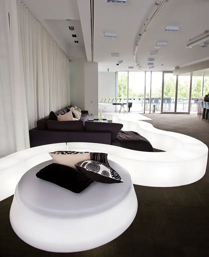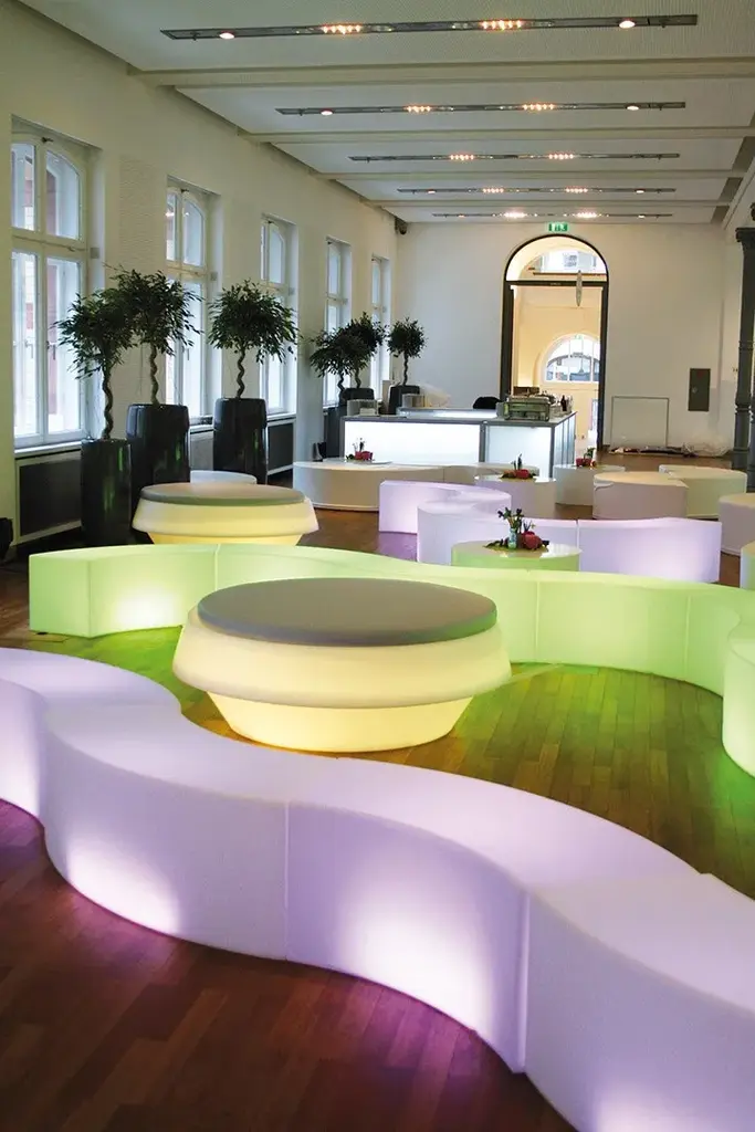 Snack Bar is a modular and luminous bar counter that is able to create a perfect blend of shape and functionality. As the other luminous display that make Slide famous all over the world, Snack Bar can be a reception desk or a bar counter. A single Snack Bar is ideal to small areas, many Snack Bar, matched with other luminous displays are ideal in large spaces. Snack Bar is suitable for indoor and outdoor of contemporary settings. The modular and luminous bar counter is made in polyethylene and it is customizable with logos and images.Versions:- standard- with light, indoor: E27 - 2 x 10W- with light, outdoor: E27 - 2 x 10W- Indoor LED: RGBW LED module with rechargeable battery- Outdoor LED: RGBW LED module with rechargeable batteryOptional soft polyurethane cushion.