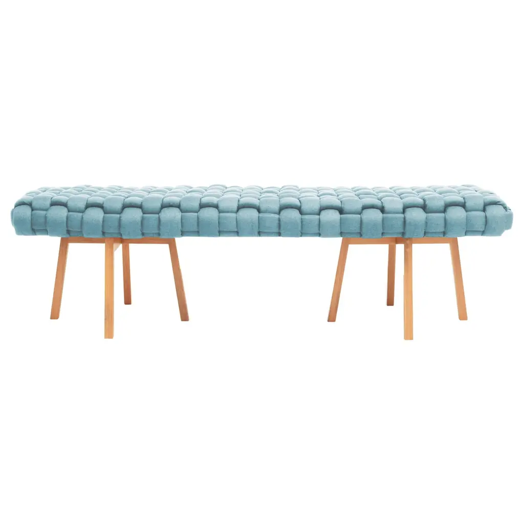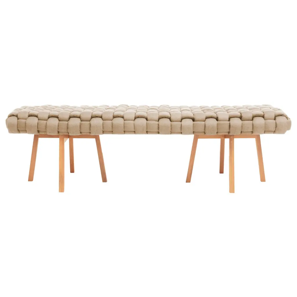 Long bench begins with a base of warm walnut wood, certified sustainable by the Forest Stewardship Council ® (FSC), and is topped by a plush cushion upholstered in a luxe wool-blend boucle. Designed by Gonçalo Campos, bench adds rich texture to the entryway, bedroom or living room. CB2 exclusive.