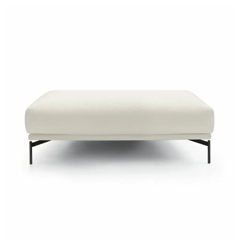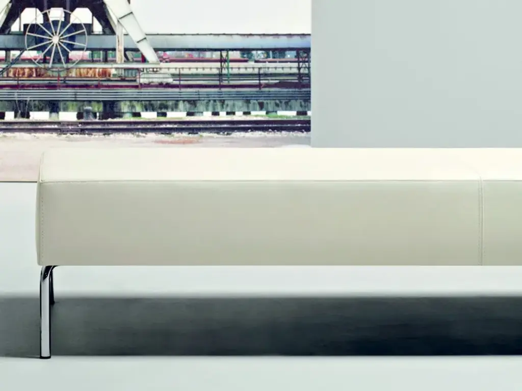A sofa, armchair and bench inspired by a simple and elegant design philosophy, and made with a craftsmans-like attention to detail. The structure consists of a wooden frame covered with non-deforming, expanded polyurethane padding of different thicknesses and polyester fibres, with the seat on elastic straps, guaranteeing optimal comfort. Chrome-plated metal feet. The upholstery comes in fabric or leather, fixed for the structure and removable for the cushions.