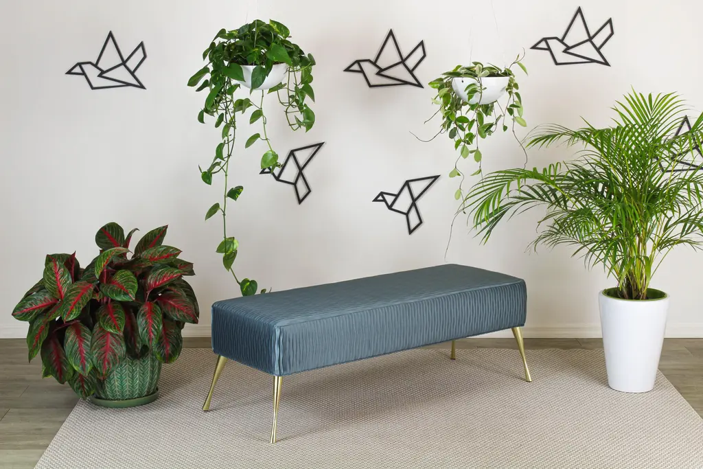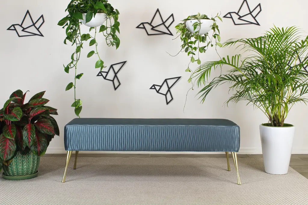 Sophisticated Italian Style Turquoise Bench With Metal Legs
