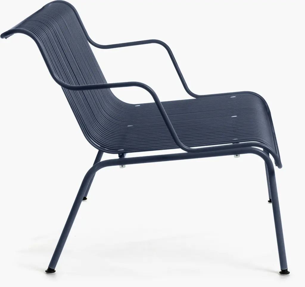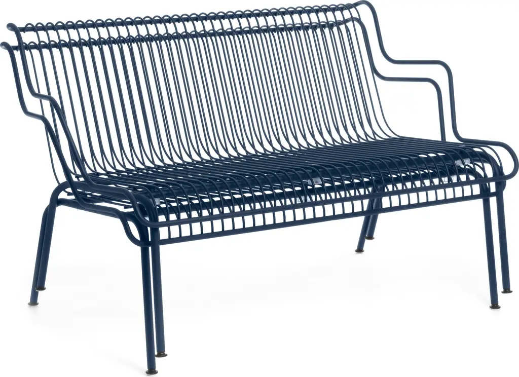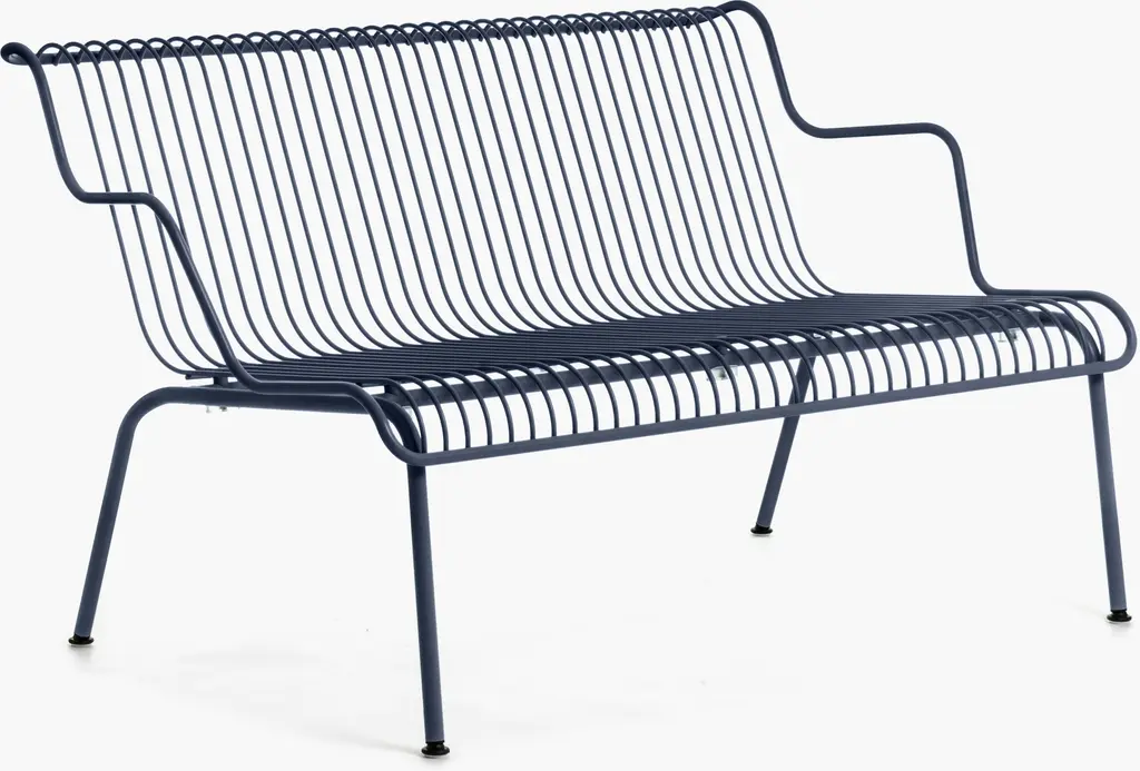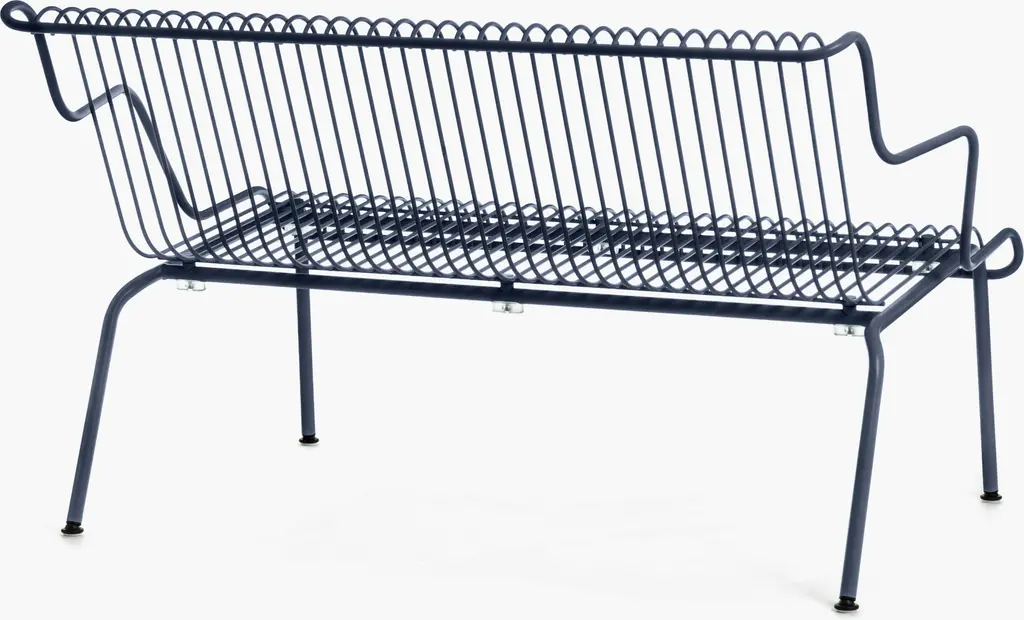 With a distinctive silhouette in powder-coated steel, the South Outdoor Lounge Bench (2023), by designer Konstantin Grcic, combines airy grace with minimalist form. Its pitched seat and angled back, curved arms, and waterfall seat edge instantly put you at ease. Beyond its artful silhouette and appealing colors, the bench has all-weather durability with impervious cataphoretic-coated steel. Stackable for easy, space-saving storage, this bench can be cushioned with the South Outdoor Lounge Bench Seat Pad (sold separately) in complementary colors. Made in Italy.