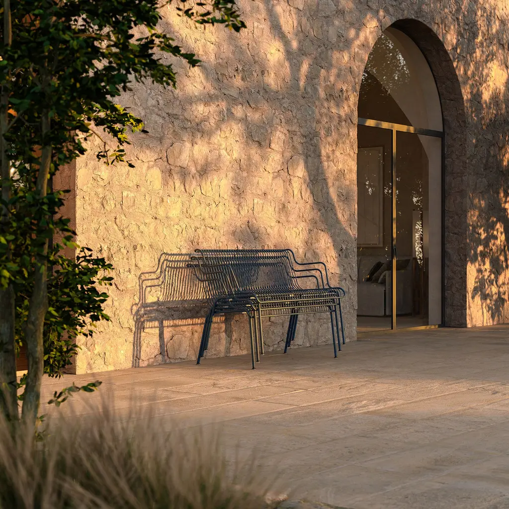 Elevate an entryway or favorite garden area with the South Outdoor Stackable Bench from Magis. Expertly crafted, this striking bench offers a sculptural silhouette and slatted frame inspired by traditional furniture designs. Spacious enough to seat two, this durable outdoor bench is perfect for relaxing on a patio or taking in some sun in your well-landscaped yard. Highlights