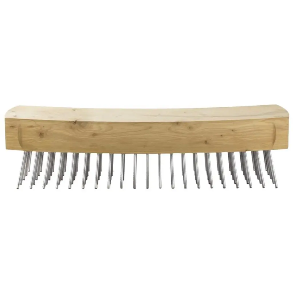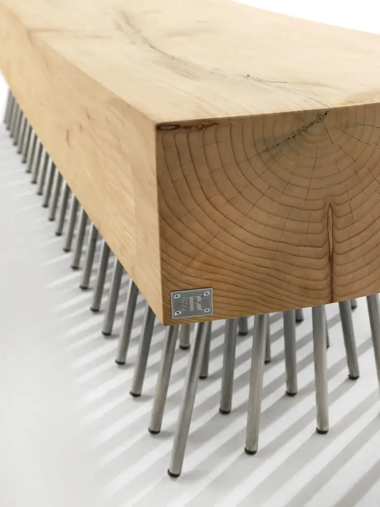 Spazzola is a bench with seat from a single block of scented cedar, equipped with an ergonomic seat. Rests on iron struts inclined at various angles.STANDARD VERSION: TUBULAR IRON LEGS Ø 1,6 CM LACQUERED IRONDUST COLOUR (B2)AVAILABLE FINISHES:A7: cedarA9: cedar contract finish, vulcano cedarLACQUERED IRON BASE AVAILABLE FINISHES:B2: lacquered iron: irondust, RAL (only selected colours)B3: lacquered iron matt brushed effect: aged bronze, stainlesssteel, titanium