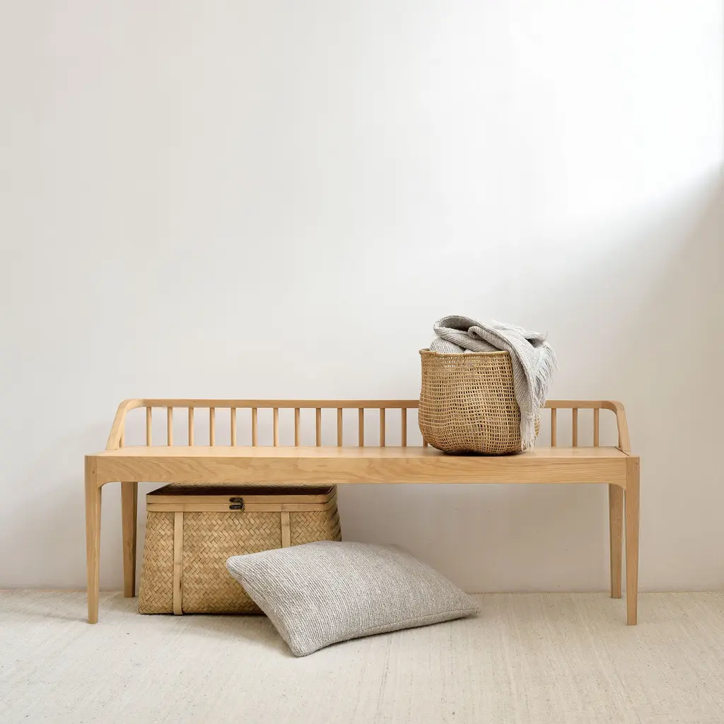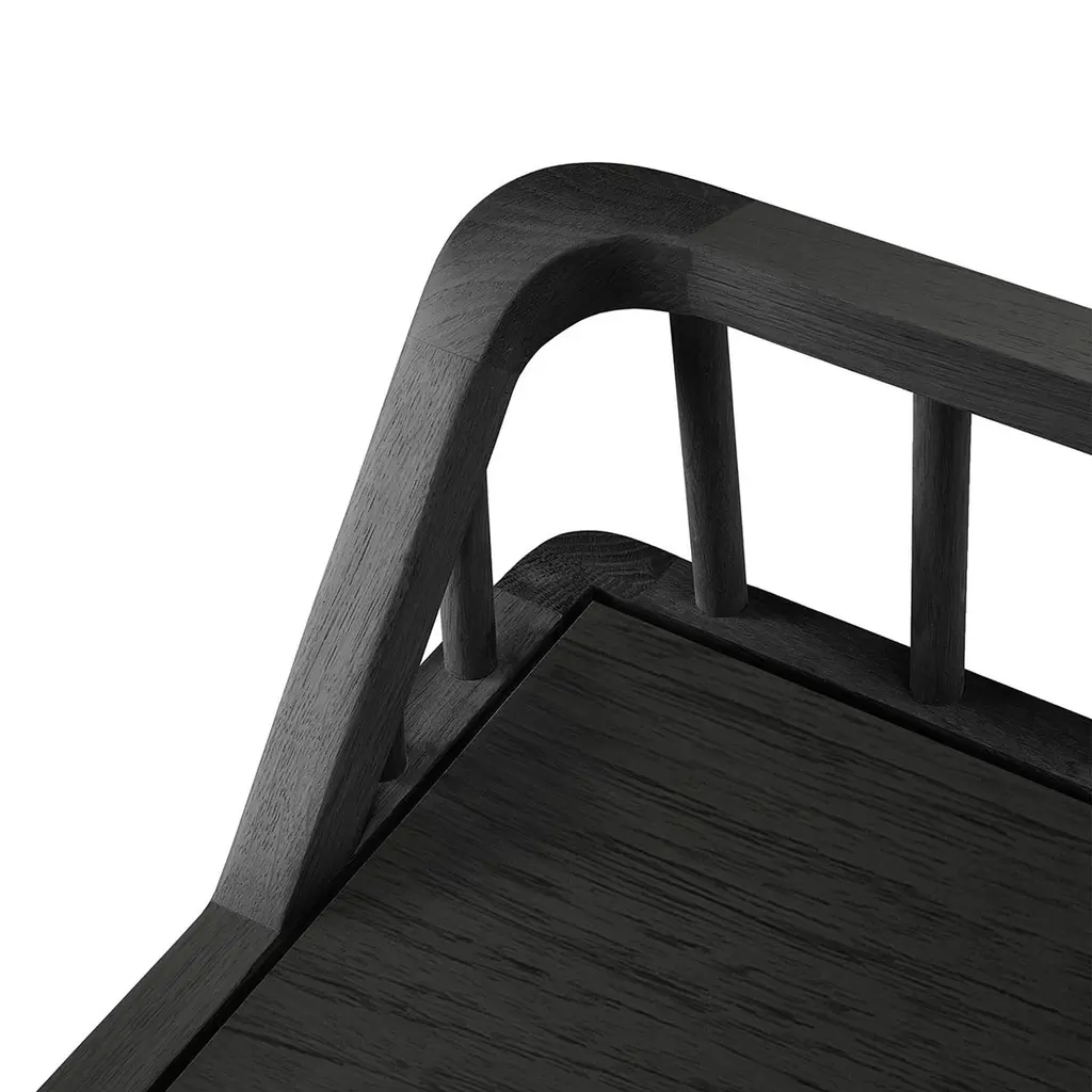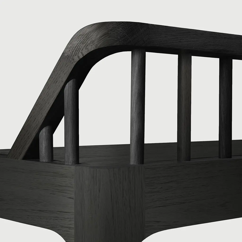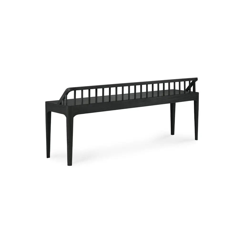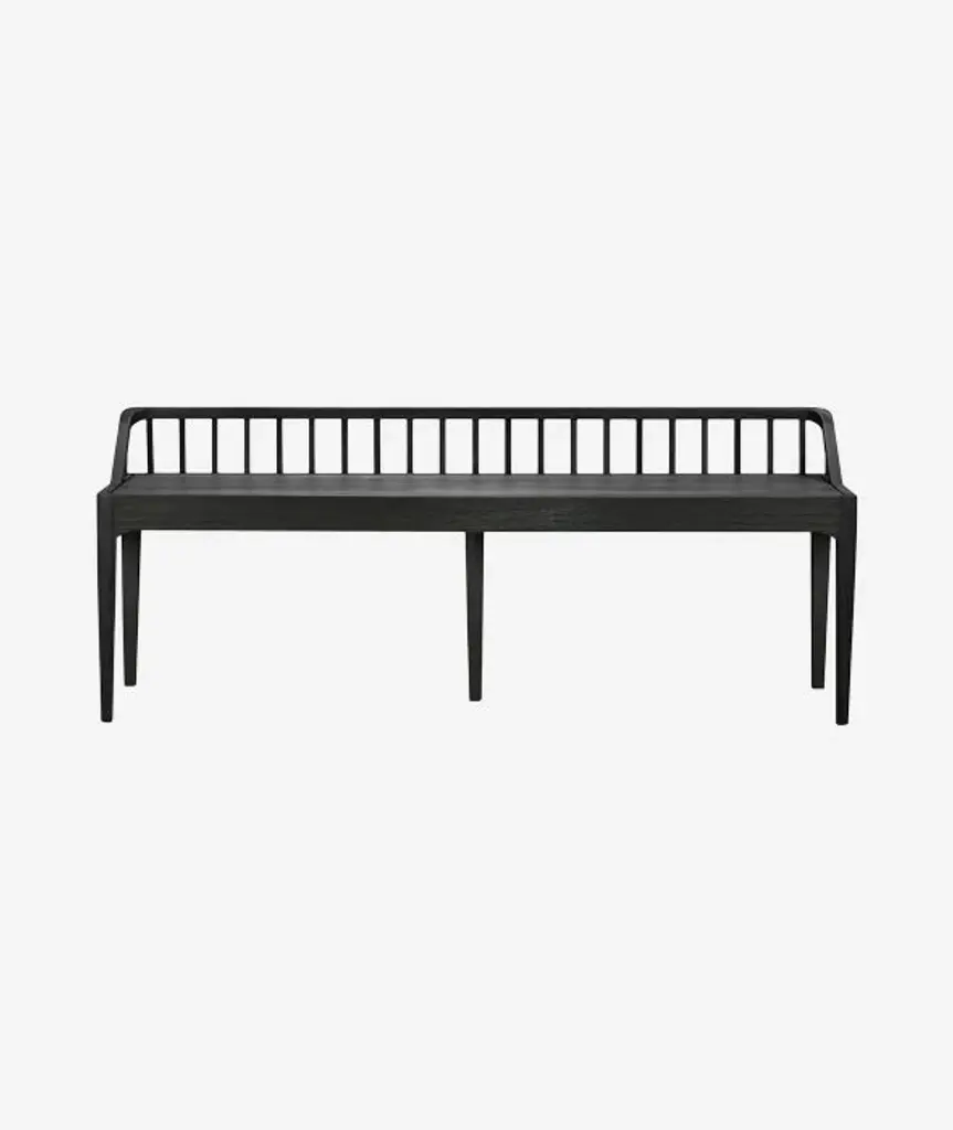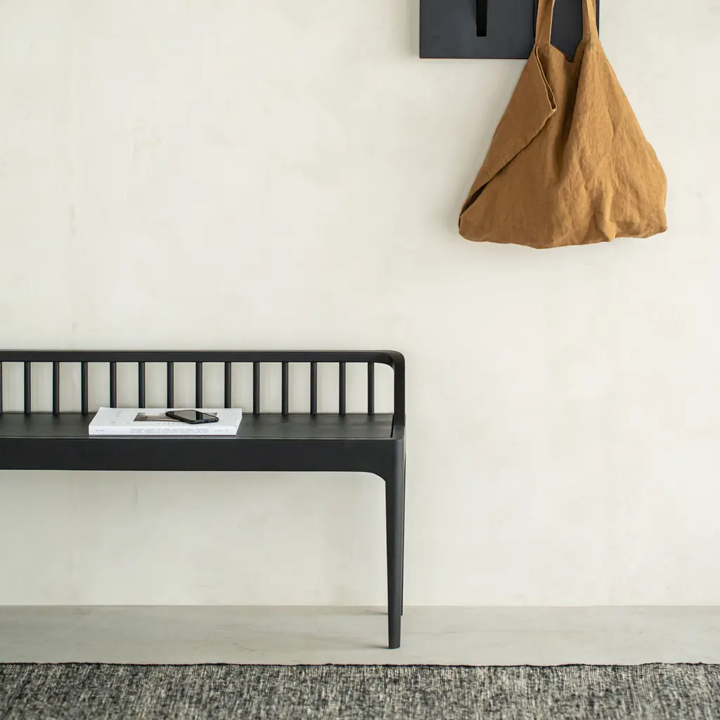 Inspired by traditional spinning wheels and classic furniture, the modern Ethnicraft Spindle Bench brings an elegant accent to living spaces. The design is simple yet refined, adding a striking feature to your home’s decor. Crafted from solid oak, the bench boasts perfectly aligned spokes on the backrest and gently curved edges. Floor protectors beneath each leg ensure that this piece of furniture will never damage more delicate flooring surfaces. This version of the Spindle Bench features a black tainted treatment and a varnish finish. Regardless of color, the bench is perfect for living rooms, bedrooms and lounge areas as well as hallways.