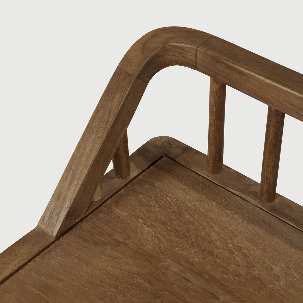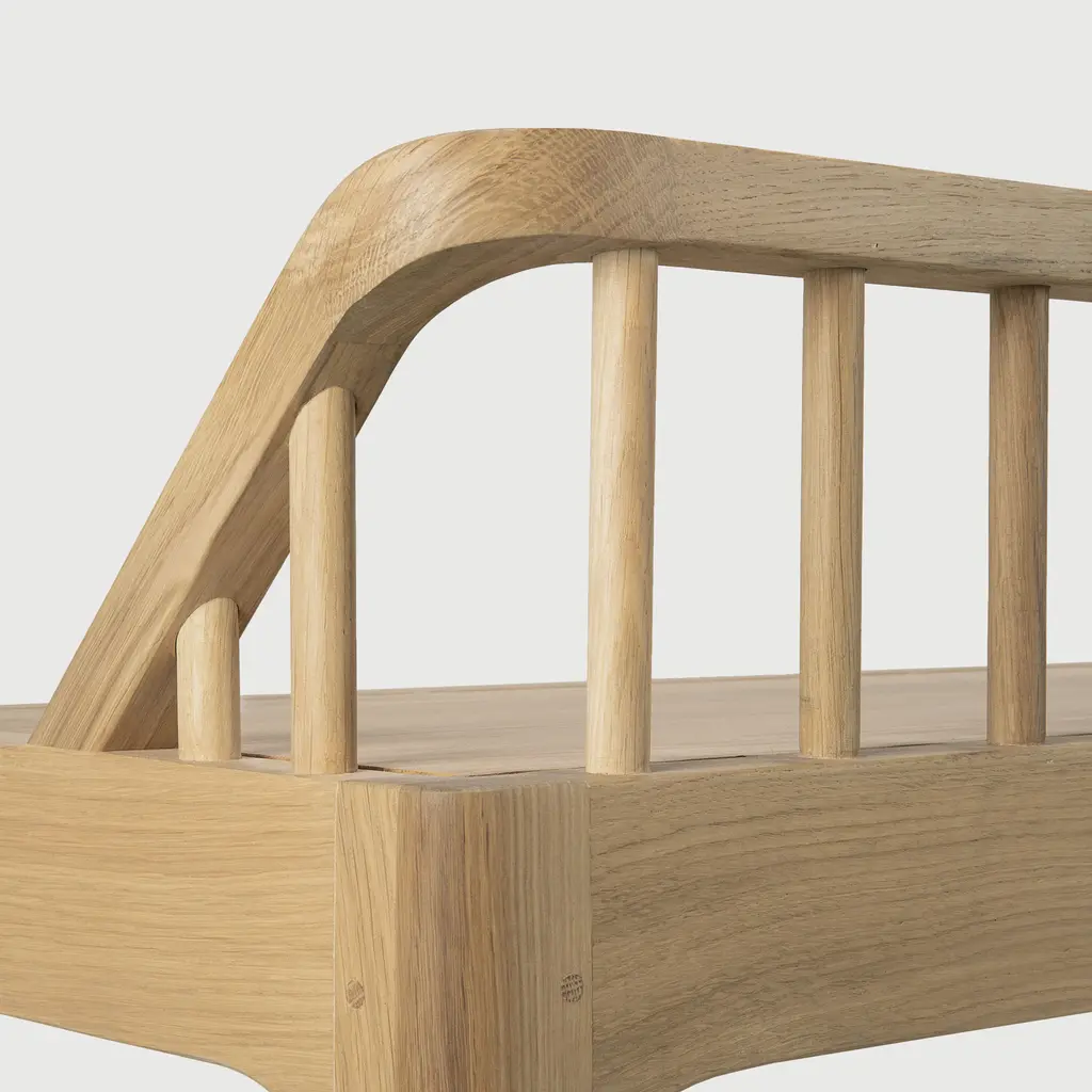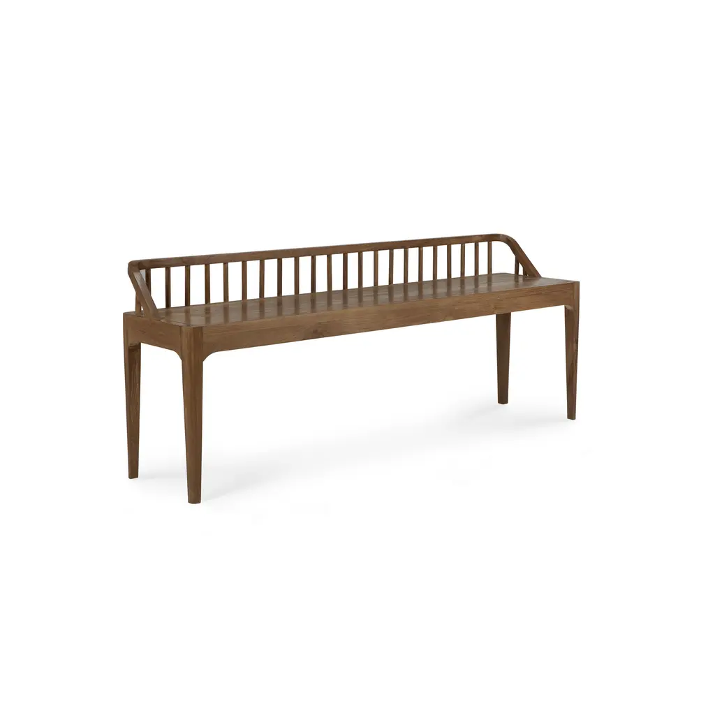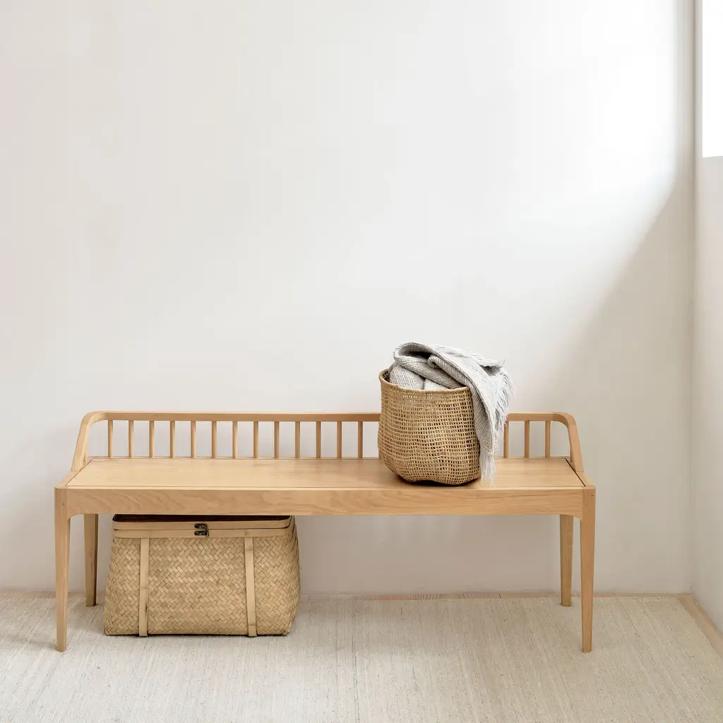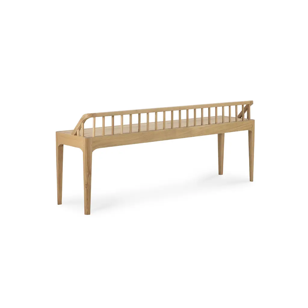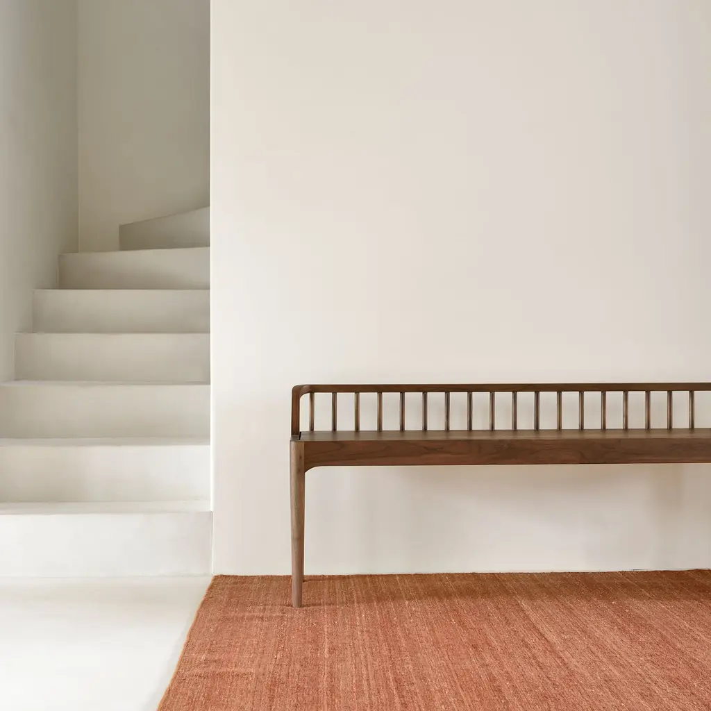 Inspired by traditional spinning wheels and classic furniture, the modern Ethnicraft Spindle Bench brings an elegant accent to living spaces. The design is simple yet refined, adding a striking feature to your home’s decor. Crafted from solid oak, the bench boasts perfectly aligned spokes on the backrest and gently curved edges. Floor protectors beneath each leg ensure that this piece of furniture will never damage more delicate flooring surfaces. This version of the Spindle Bench features a black tainted treatment and a varnish finish. Regardless of color, the bench is perfect for living rooms, bedrooms and lounge areas as well as hallways.