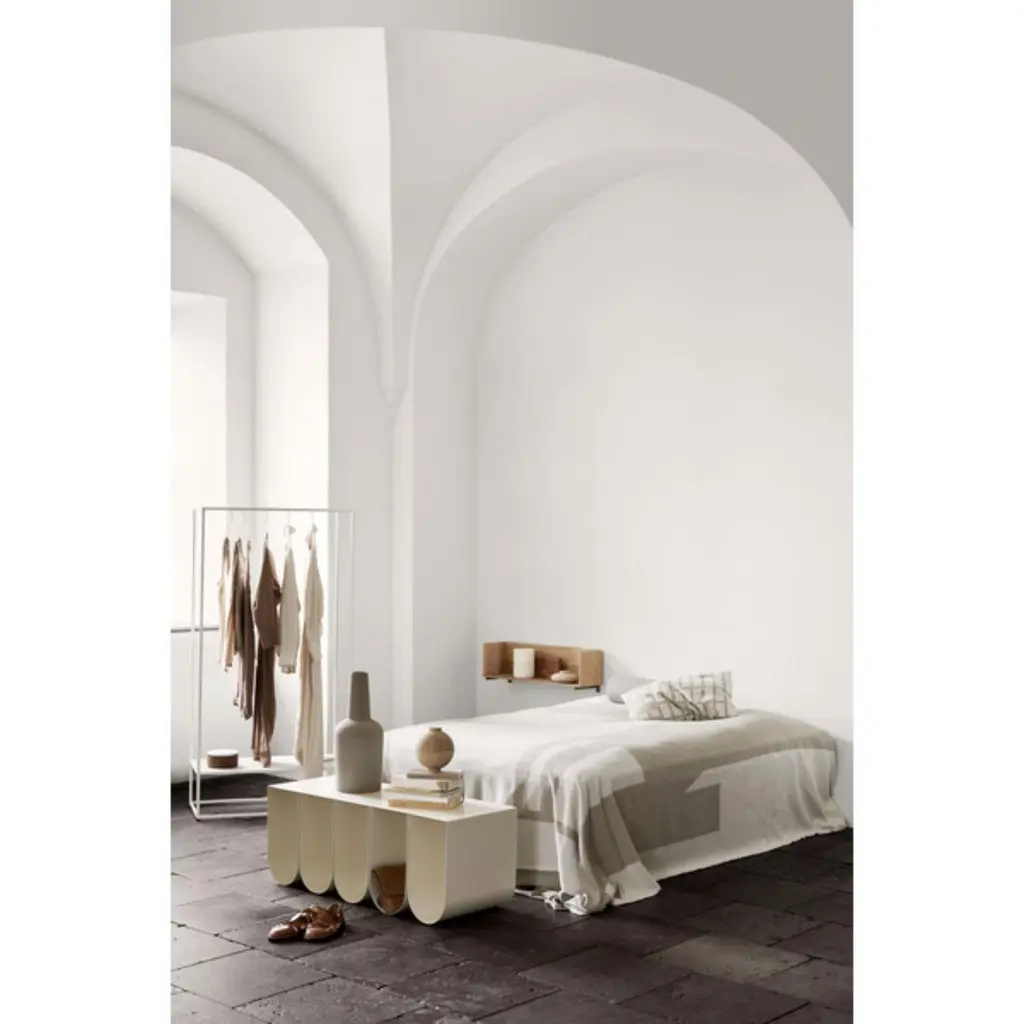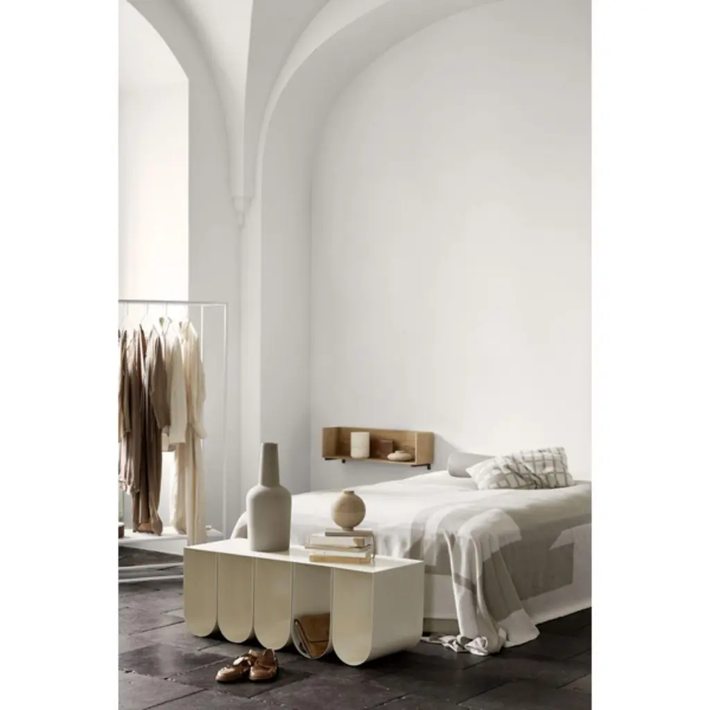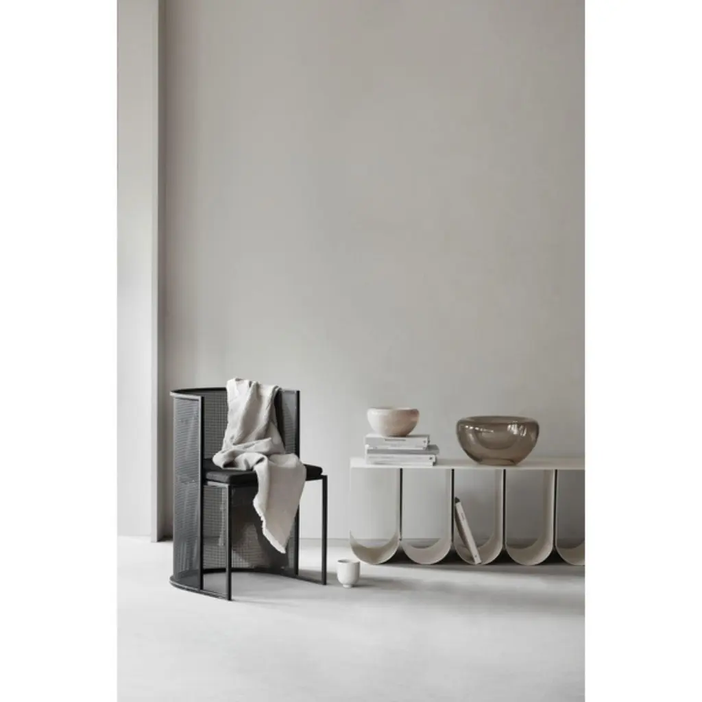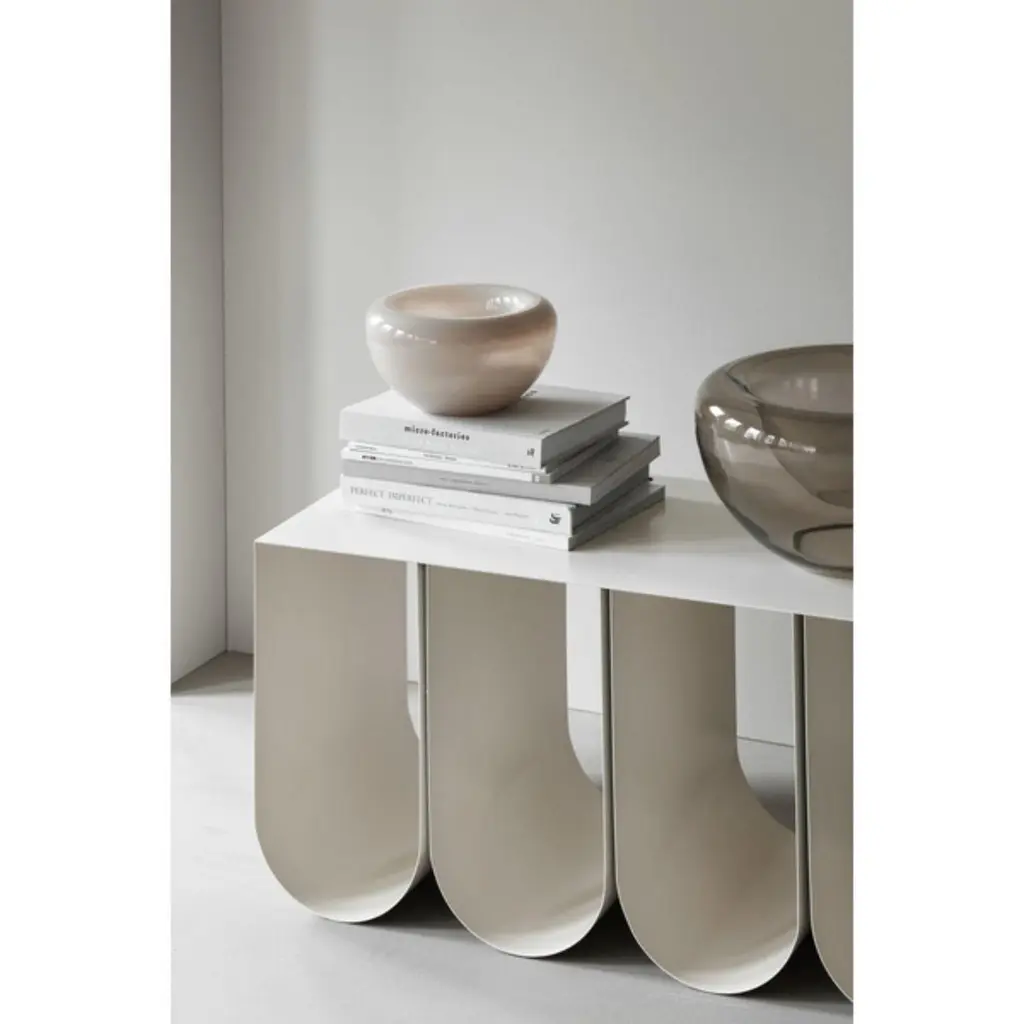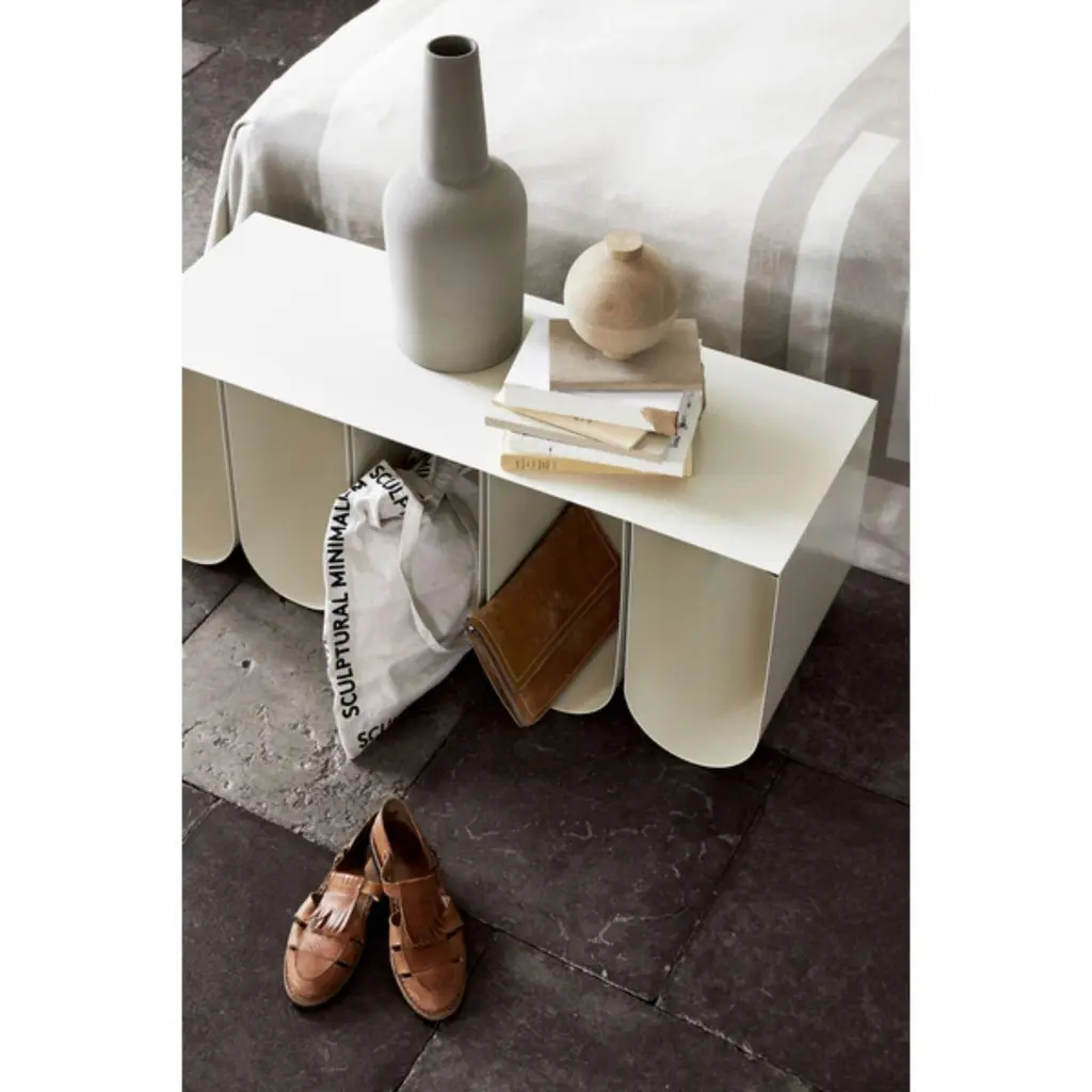 Steel curved bench by Kristina Dam StudioMaterials: Beige powder-coated steelDimensions: D 40 x W 110 x H 42 cm35 kgDimensions cannot be customized.Safe to use outdoor.Kristina Dam graduated from The Royal Danish School of Fine Arts, Architecture and Design in Copenhagen. In her designs you will find her great love for architecture and minimalistic graphic lines.Everything originates from Kristina’s passion for design and art. She will find her inspiration when travelling, browsing Pinterest, blogs, Instagram and talking to people.Her first product - a series of limited edition illustrations - quickly became a favorite in Scandinavian design stores, magazines and homes. Today Kristina Dam Studio has developed into a design powerhouse of furniture and accessories. Two collections are launched every year and we collaborate with upcoming as well as established designers.Kristina Dam Studio was founded by graphic designer and architect Kristina Dam in 2012. The initial design idea for the studio was to create Industrial designs that had a more art-based approach. The idea of making art and interior design merge, both in furniture, accessories, art prints and illustrationsWe call our design approach for "Sculptural Minimalism". Designs by Kristina Dam Studio are graphic and architectural with a high level of details and excellent craftsmanship. Furniture from Kristina Dam Studio are mostly made from natural materials. We believe that mastering the monochromatic palette enable us to create timeless and enduring designs. Distinct and beautiful - simplicity with an attitude. Honest materialsWe only use honest, genuine, natural and carefully selected materials - and we treat them with respect. The majority of our collection is produced within the European Union. Our love for genuine materials is a part of our Nordic design inheritance - a legacy we take very seriously. Sculptural MinimalismThe major lines in the designs are graphic and architectural. A high level of details and pristine craftsmanship are key are well. Kristina Dam Studio furniture pieces are assembled with spigot joints and dowels and produced in natural materials. You’ll find the same love for details in all of your designs.A sculptural approach to designKristina Dam Studio aim to design products with at sculptural approach. Designs that have character, style and a bold expression that will add something extra to your interior. With each collection at least one new sculpture is launched. That sculptural quality and approach is visible in all our designs.