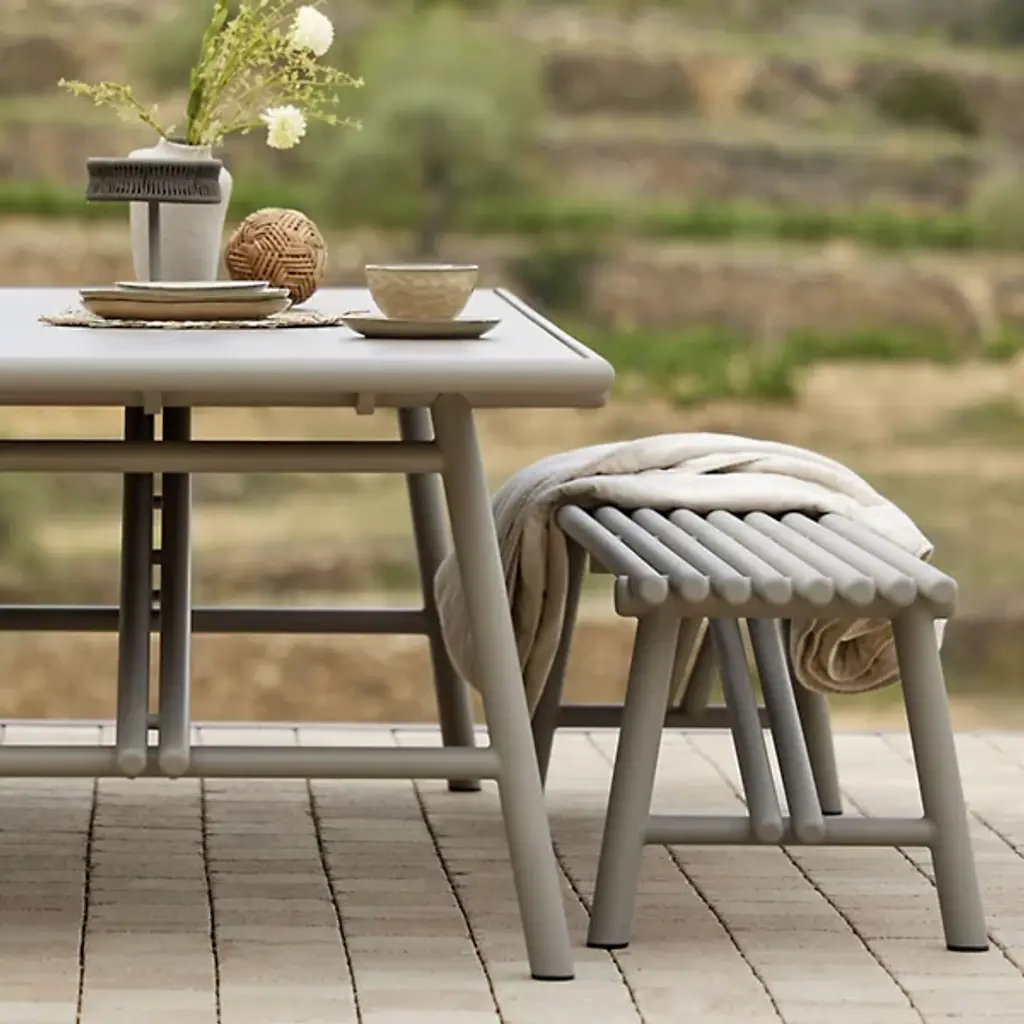 The Sticks Outdoor Bench from Cane-line is a contemporary piece inspired by the simplicity of nature. Featuring fabric and filled with QuickDry foam for effortless maintenance, Sticks is expertly designed to withstand the elements while providing unparalleled comfort and style. Its streamlined and minimalist design, inspired by the organic beauty of sticks, brings a touch of natural elegance to your outdoor space. It has a slatted form that enhances functionality.