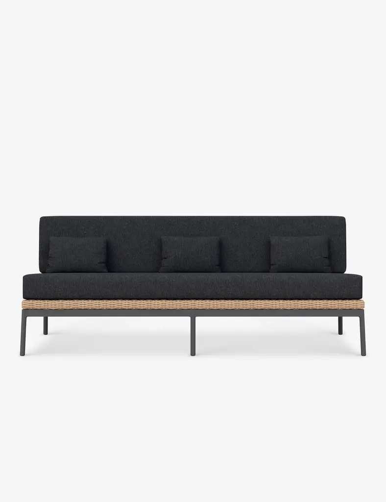 The Salinas bench has a refined design that evokes the atmosphere of the island, from which the whole collection draws inspiration. The colors of the sand and the sea of Salinas, in Ibiza, emphasize the fabrics, and give charm to the outdoor environment. Precious metal details are left visible by the strap that becomes a design element.