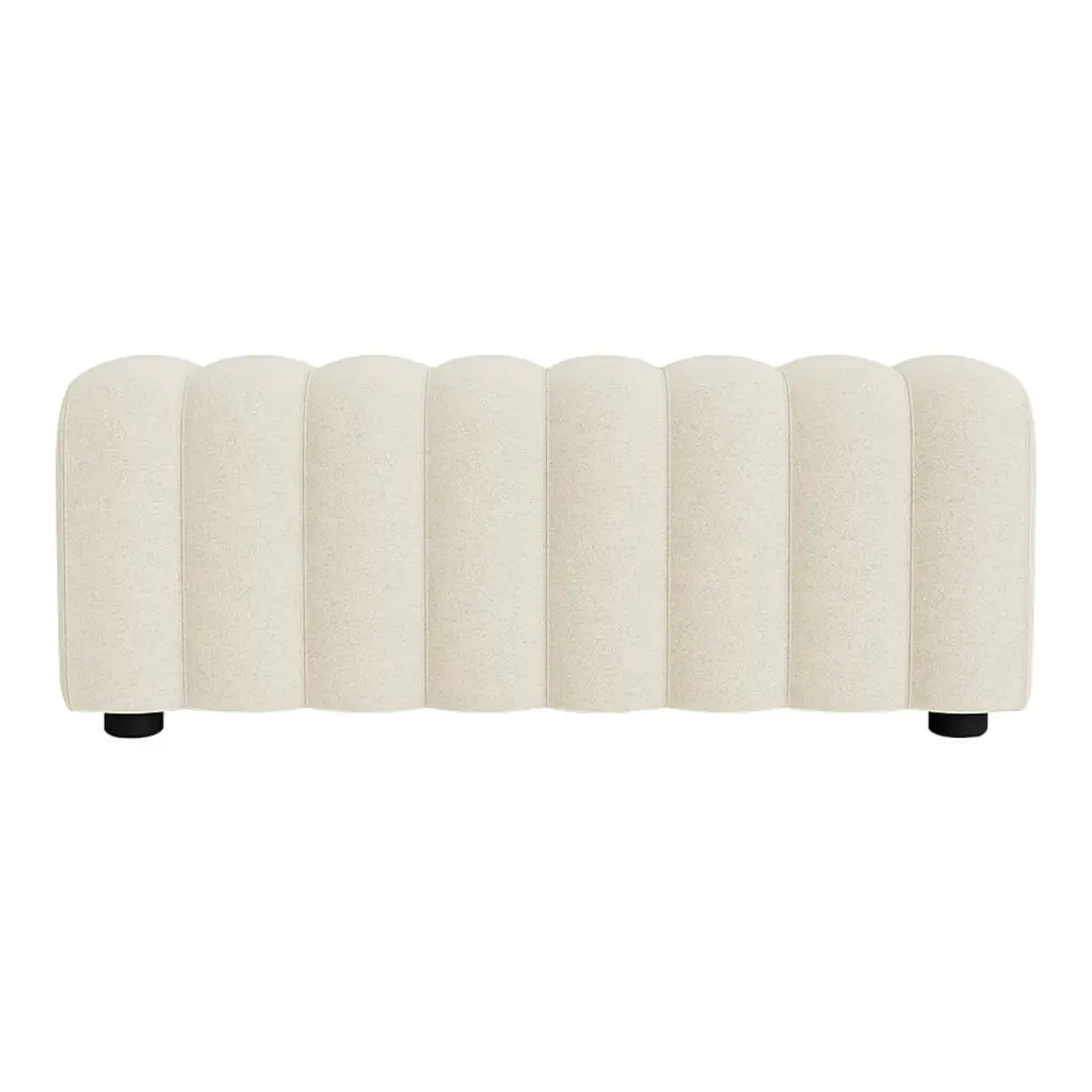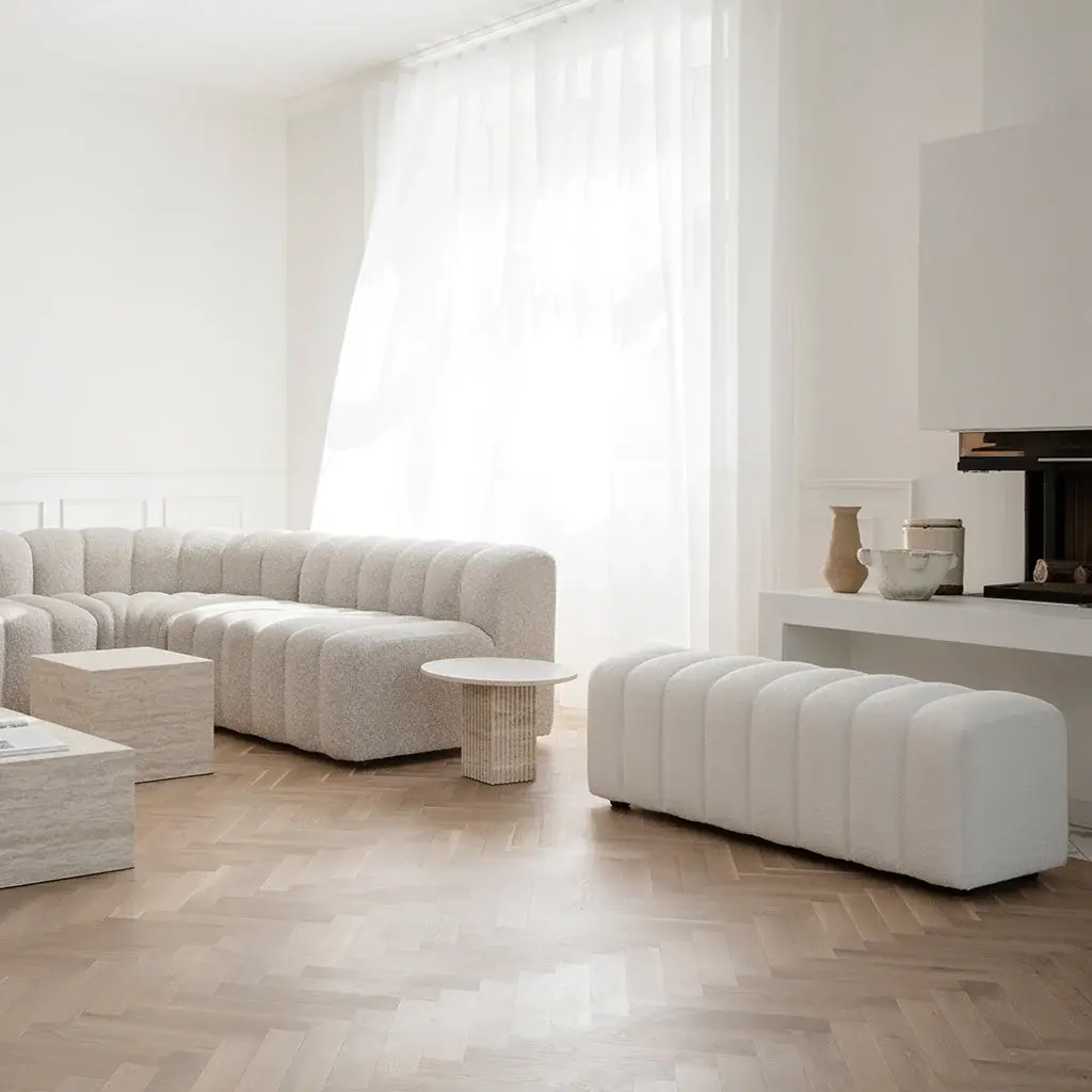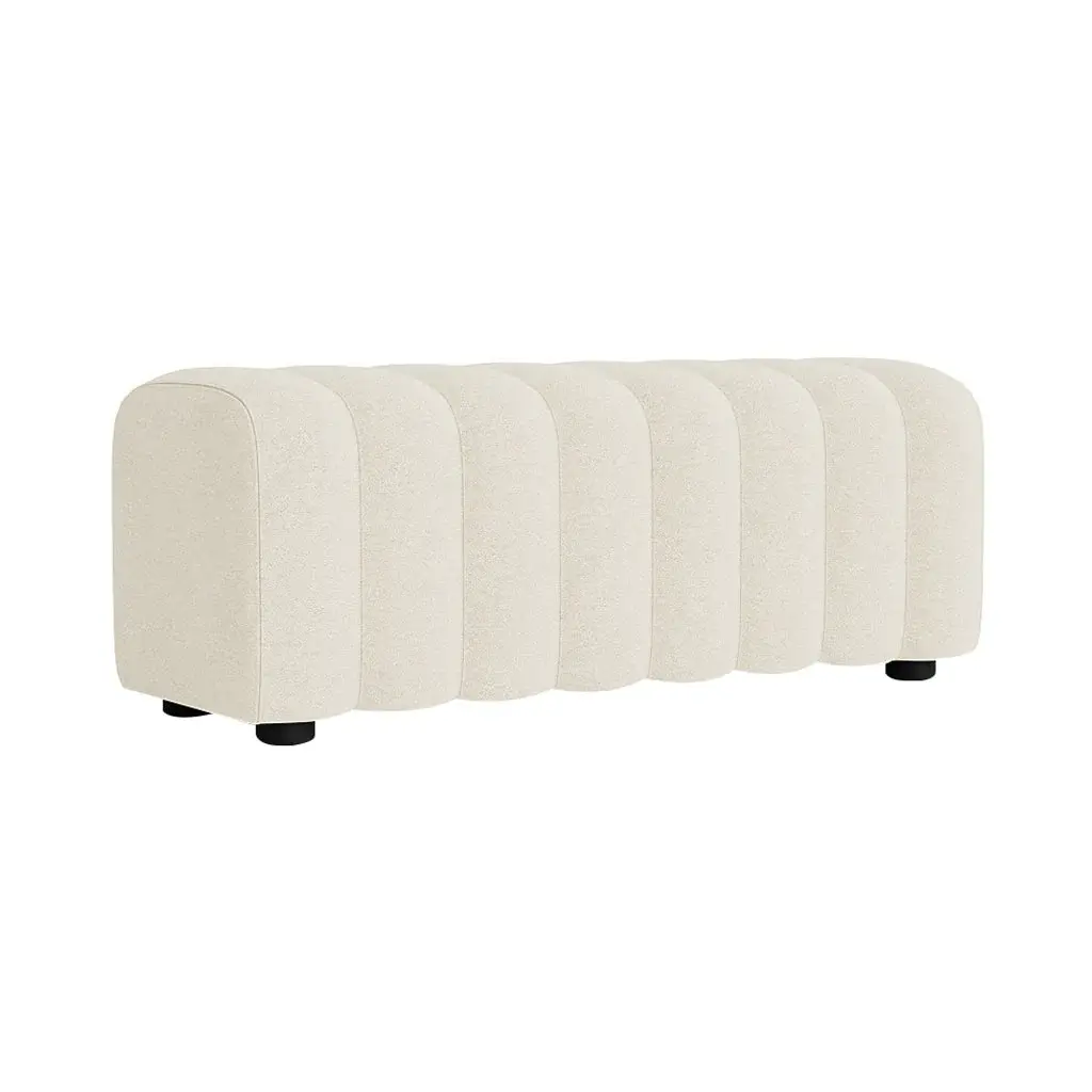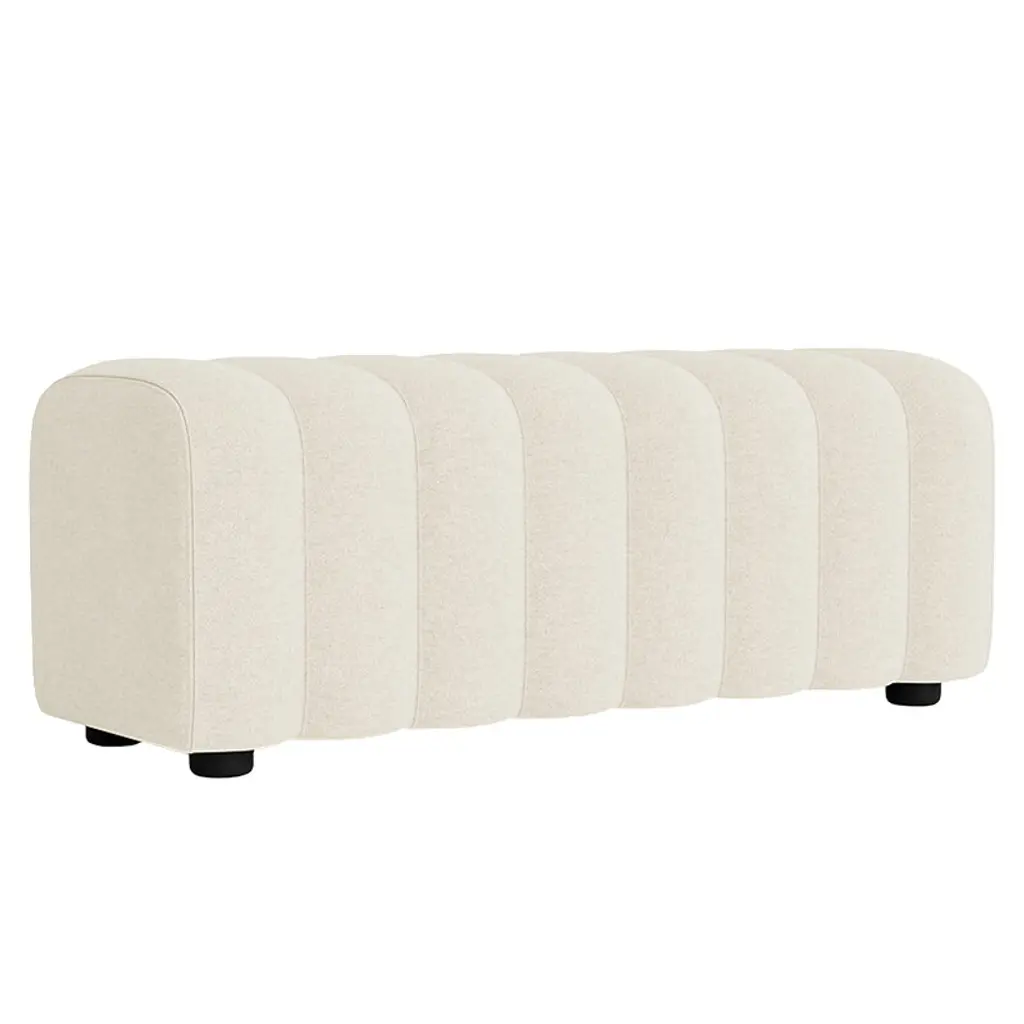 The Studio Bench, influenced by 1970s sunken lounge sofas, features a distinct fluted upholstery design, giving it a ribbed texture that stands out. Its low-profile, rectangular seat rests on a minimalistic frame. With no backrest, the Studio Bench can be used as standalone seating or integrated into modular arrangements for flexible use. Available in a luxe range of leather and fabric upholstery.