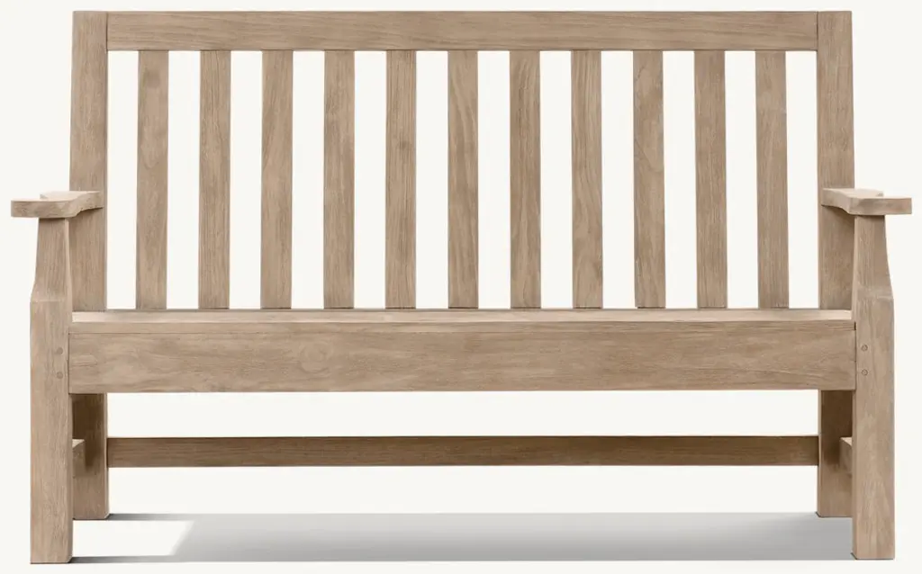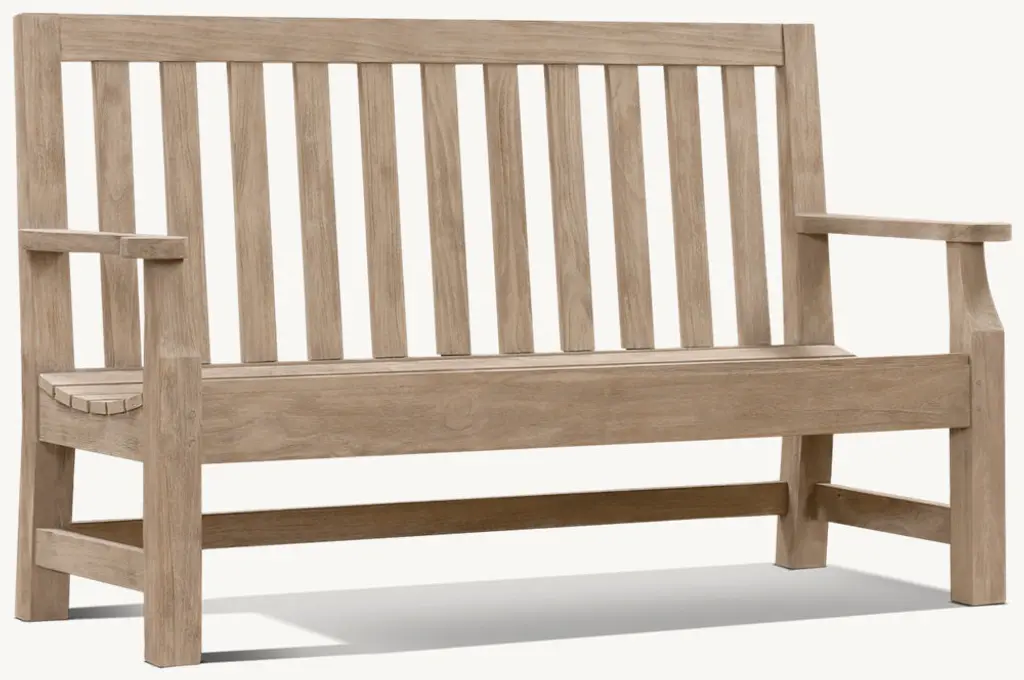 Our classic garden bench features the high back, delicately scrolled arms, and dished seat of the 19th-century original, but has been updated in teak.