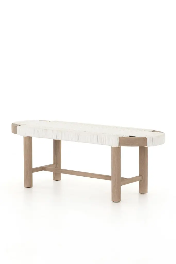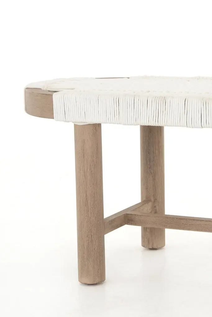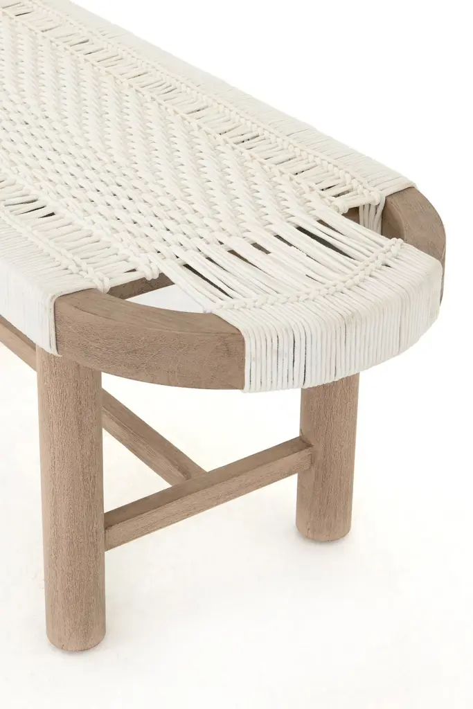 Sumner Rectangular Woven Rope Teak Outdoor Bench