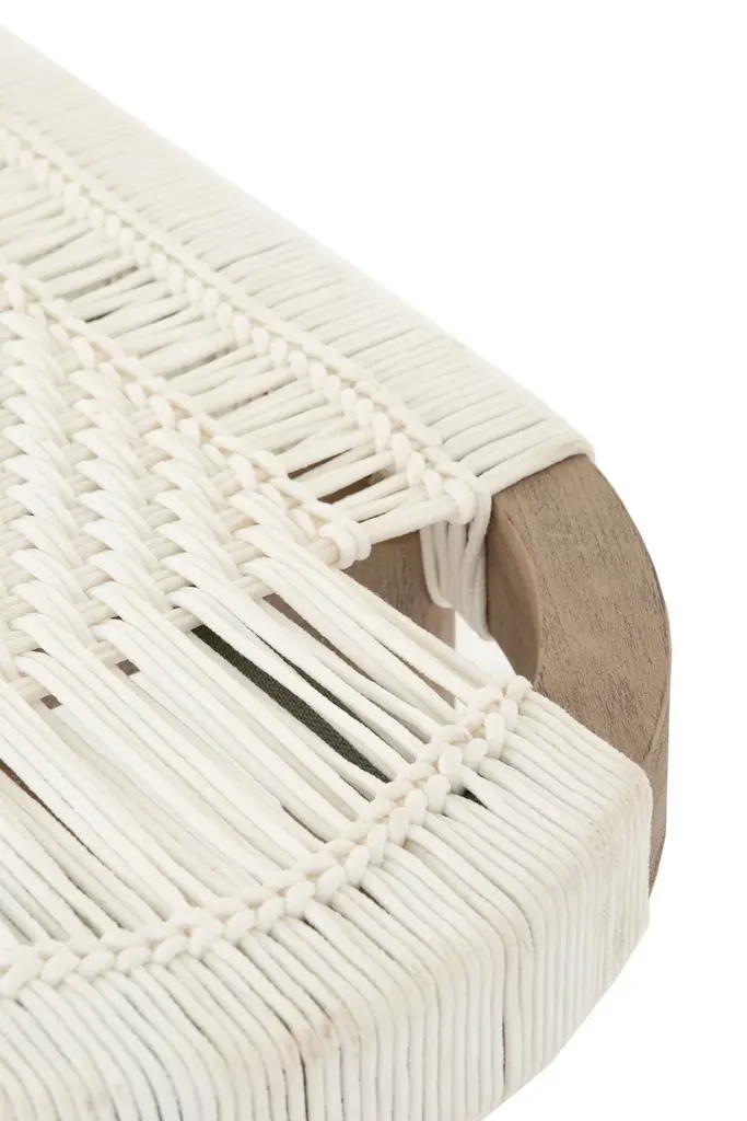 Clean and angular for a streamlined effect, solid teak framing is accented with white rope seating, woven for a textural effect. For ordering assistance and more, please [contact us](https://www.anthropologie.com/help/contact-us#contact-us-section-2). For aesthetic advice and tips to help decorate your space, enjoy our complimentary [home styling services](https://www.anthropologie.com/help/personal-styling-home-decor).