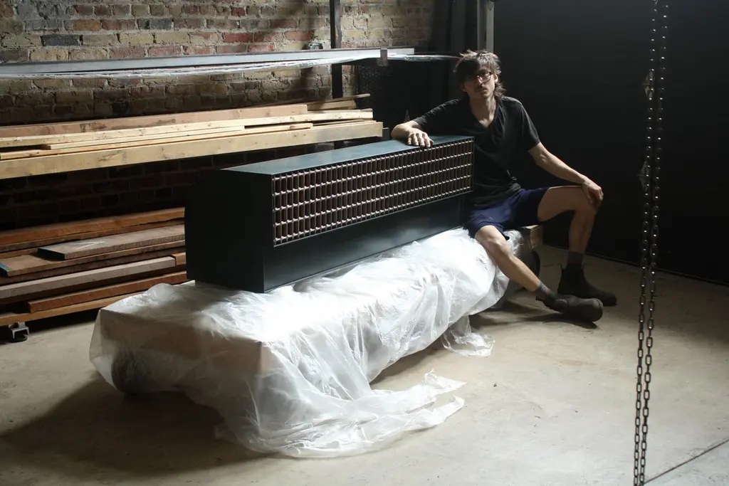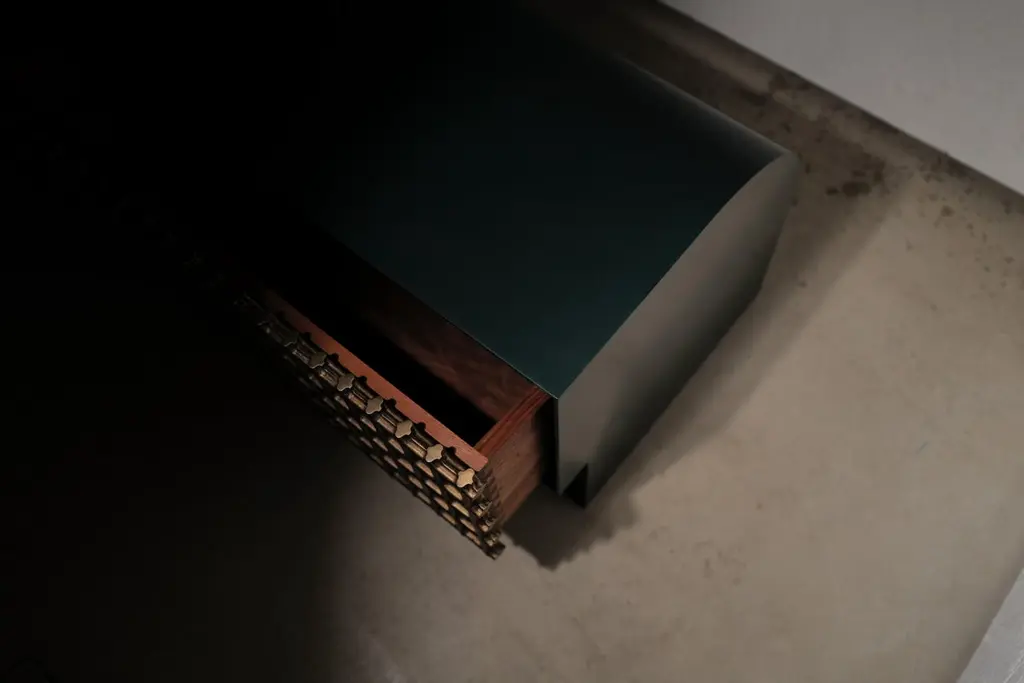 Sunbreaker Two Drawer Bench by Laylo StudioLimited EditionDimensions: D 45.7 x W 152.4 x H 45.7 cm.Materials: Steel, cast bronze, walnut.Reflecting upon the perception of value under the influence of contemporary culture, our variation in this collection seeks to elevate foundational infrastructure into an object of aesthetic contemplation. Showcasing how what is essential can also be coveted. This series invites a deeper appreciation for the every day, transforming the functional into the remarkable while subtly encouraging us to observe and value the beauty in the structures that support our daily lives.LAYLO is the practice of Sam and Lydia Link. Founded with the intention of building through the exploration and integration of traditionally siloed crafts, the partners design and independently produce limited edition, functional works in their Chicago workshop using both contemporary and age-old equipment and techniques.Sam and Lydia are deeply committed to creating each piece themselves, believing firmly that this hands-on approach imbues their creations with a tangible essence of their presence as both artisans and artists.Their work is a testament to their dedication and passion, an ode to the meticulous and diligent process of creation. They adopt a "slow-cooker" approach to design and manufacturing, a deliberate counter-narrative to the relentless 24/7 production schedule that has dominated the market since the mid-19th century referencing the contrarian Arts and Craft and Studio Craft movement that emerged. As a result of their methods, each piece in their collection is not merely an object but a narrative of Sam and Lydia’s personal journey through the manual manipulation of materials. Their work is informed not just by their own creative visions but also by external references that guide their labor. In an age of mass production, LAYLO stands out as a beacon of individuality and craft, offering pieces that are not just made but are brought into existence with intention, care, and a profound connection to the history and significance of making.