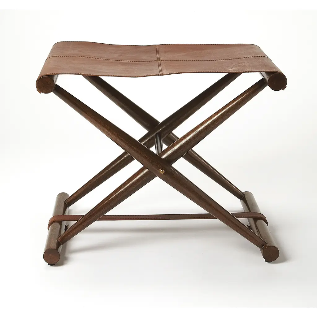 Butler Specialty Company Sutton Leather Folding Stool, Medium Brown