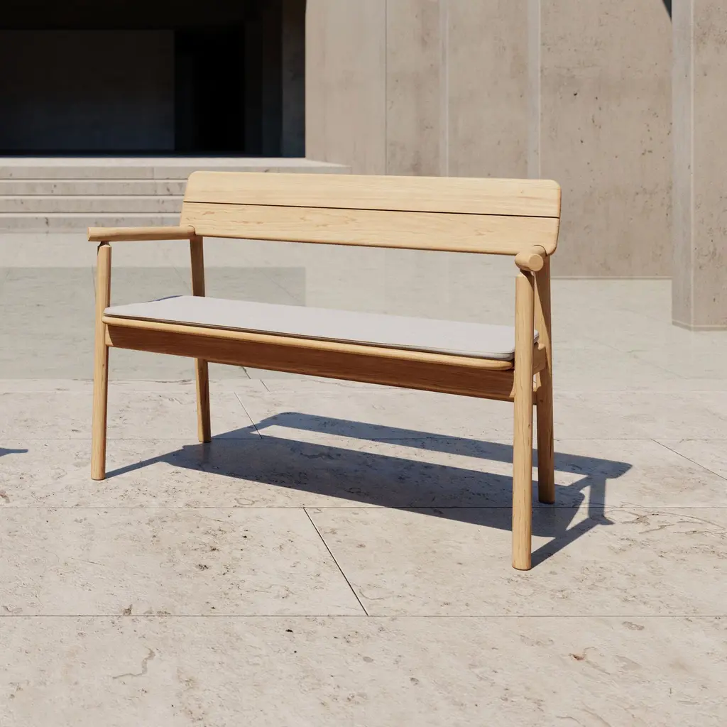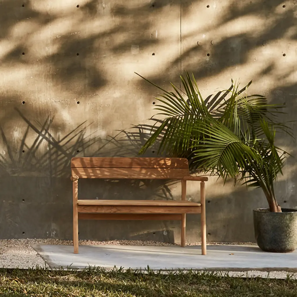 Inspired by the simplicity of Japanese furniture, Tanso from London-based Case bridges the gap between outdoors and indoor with elevated craftsmanship and fine detail. Robustly constructed in grade-A teak, designer David Irwin’s bench has cleverly angled, flat seat boards to allow rainwater to run off. Available with a removable cushion for enhanced comfort.