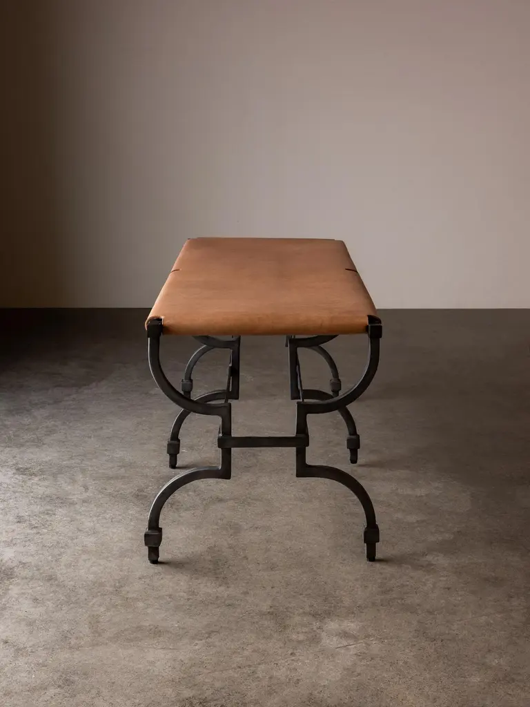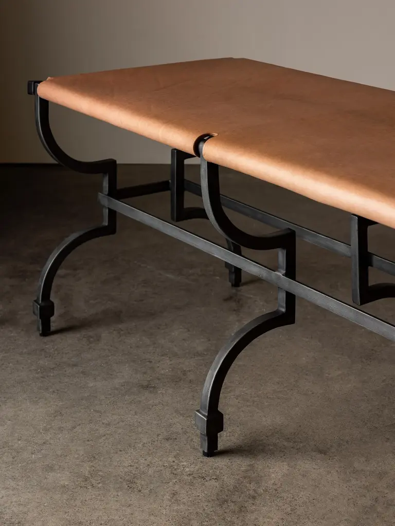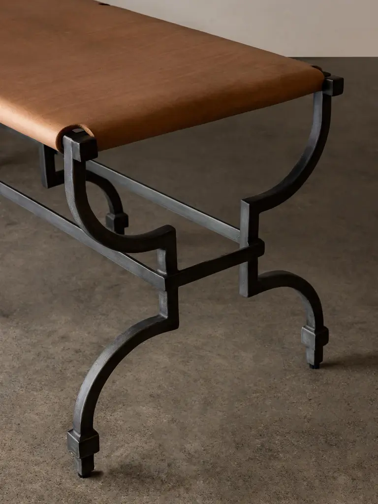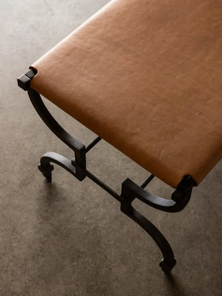 With all the romance of its stretched tan leather and hourglass iron frame, Tautou embodies the treasure of the hotelier - that single piece of furniture that speaks of history, artistry and elegance but is as functional as it is, superlative. By design, its materiality will take on a depth and beauty only achieved through use and through age: its leather set to soften, its tone to deepen, its frame to be marked by experience but a piece that will remain timeless and celebrated throughout the decades.
