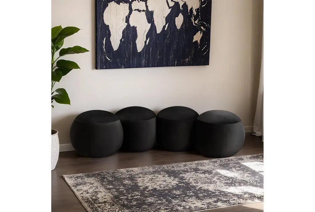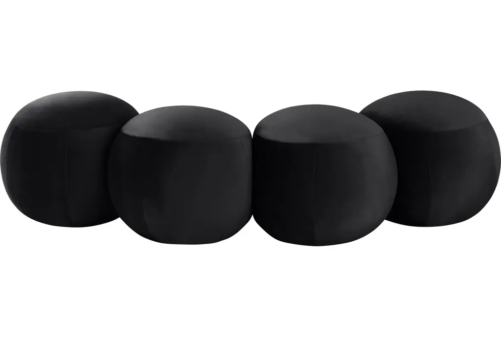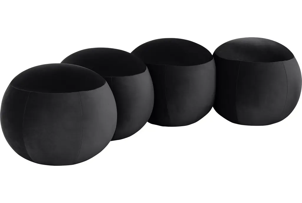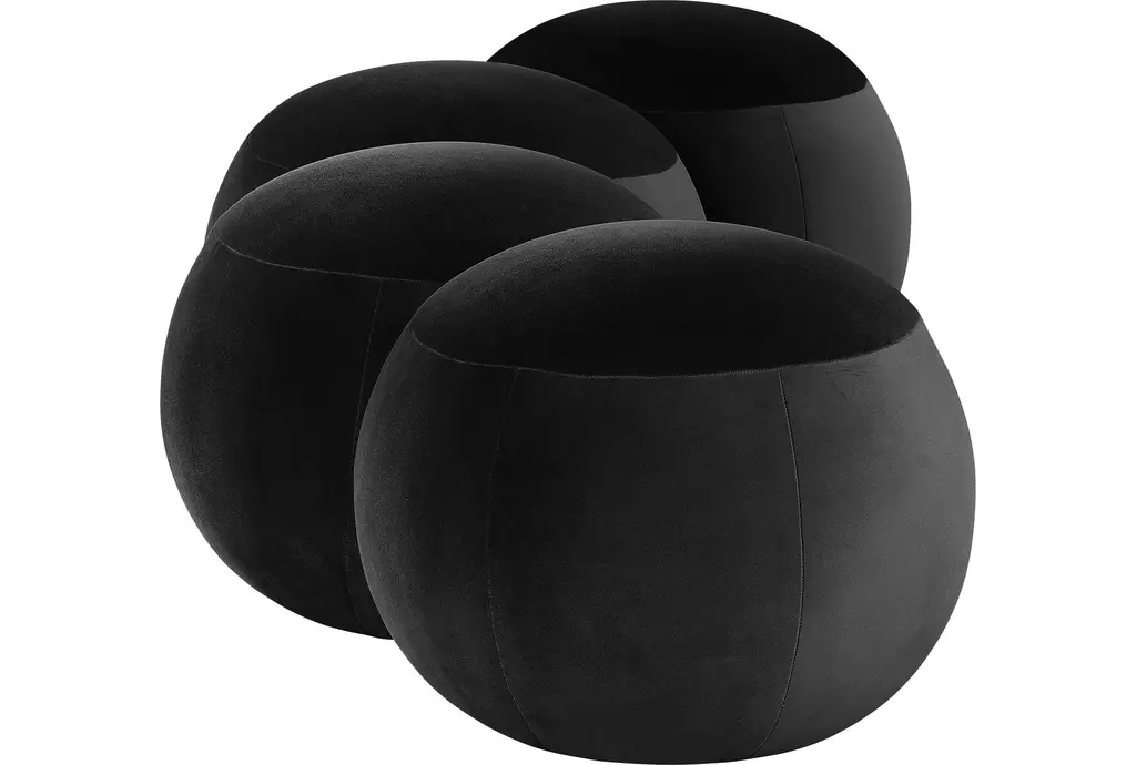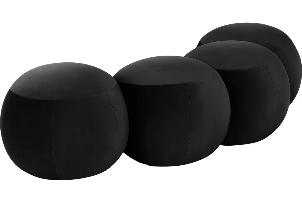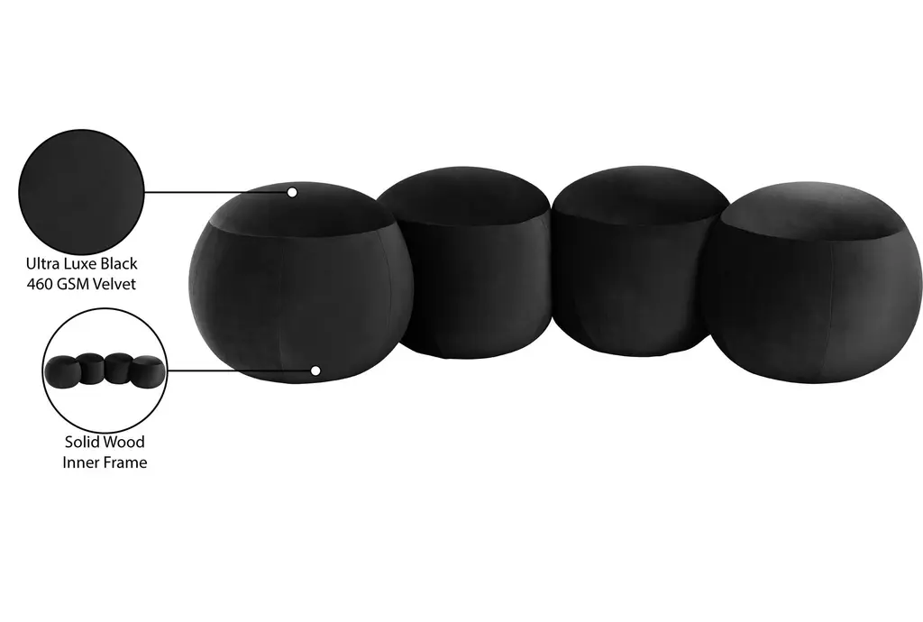 Tavi Black Velvet Upholstered Bedroom Bench introduces plush seating and a sculptural, rounded form that anchors a bedroom or entryway. Upholstered in black velvet with foam fill, the backless, armless bench rests on an eucalyptus and plywood base for steady support. The compact footprint and cloud-like seat make it a versatile piece for the foot of a bed or a welcoming entryway seat.