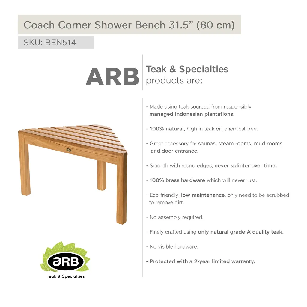 Teak Shower Bench Coach Corner 31.5" (80 Cm) - Brown