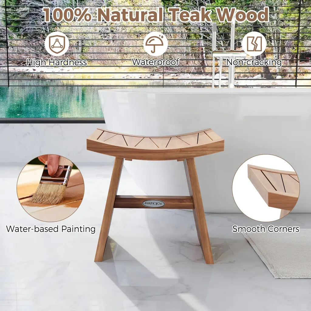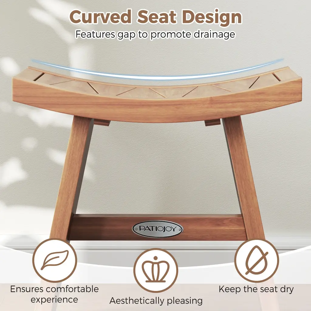 Teak Wood Ergonomic Shower Bench With Waterproof Coating And Curved Seat - 18" X 13" X 17.5" - Teak
