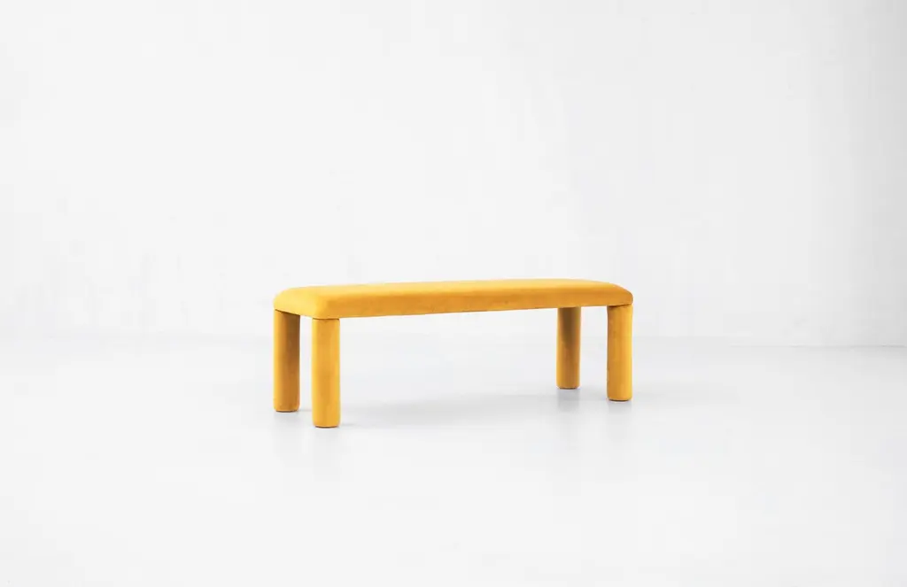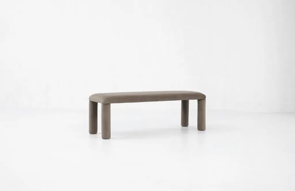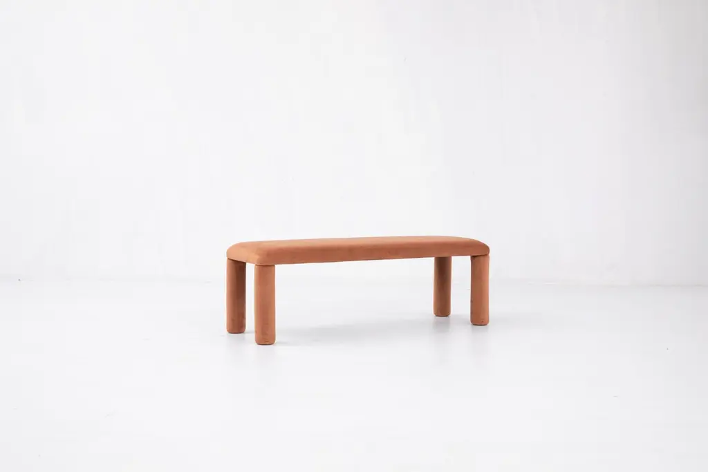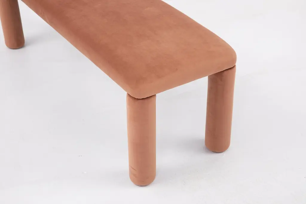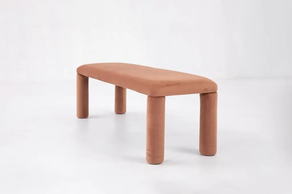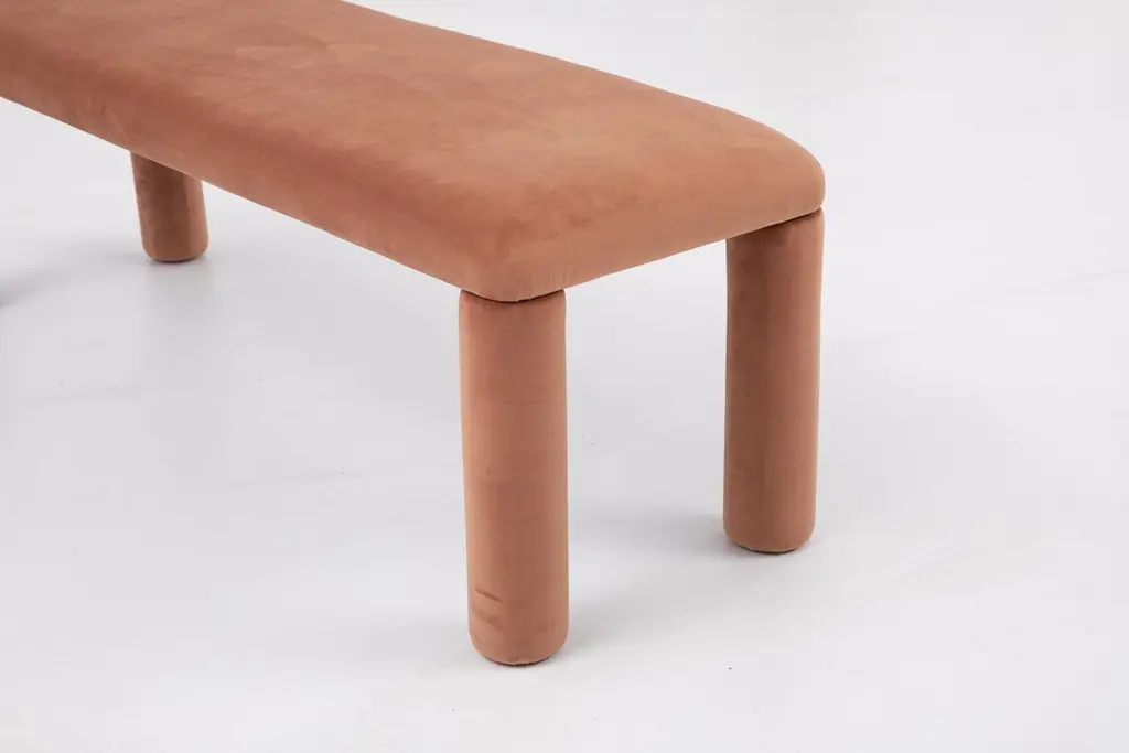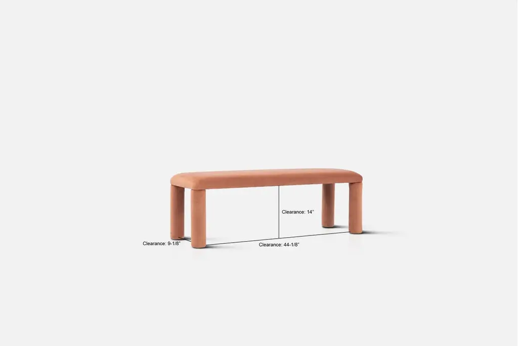 Plush, soft, and velvety. The Temi Bench brings a soft feel to any room. No worrying about bumping into sharp corners. Available in a variety of colors. The fabric is durable, meant for daily use, and resistant to spills and stains.100% polyester velvet, abrasion and stain resistantSteel frame52" W x 17" D x 17" H Swatches available upon request.