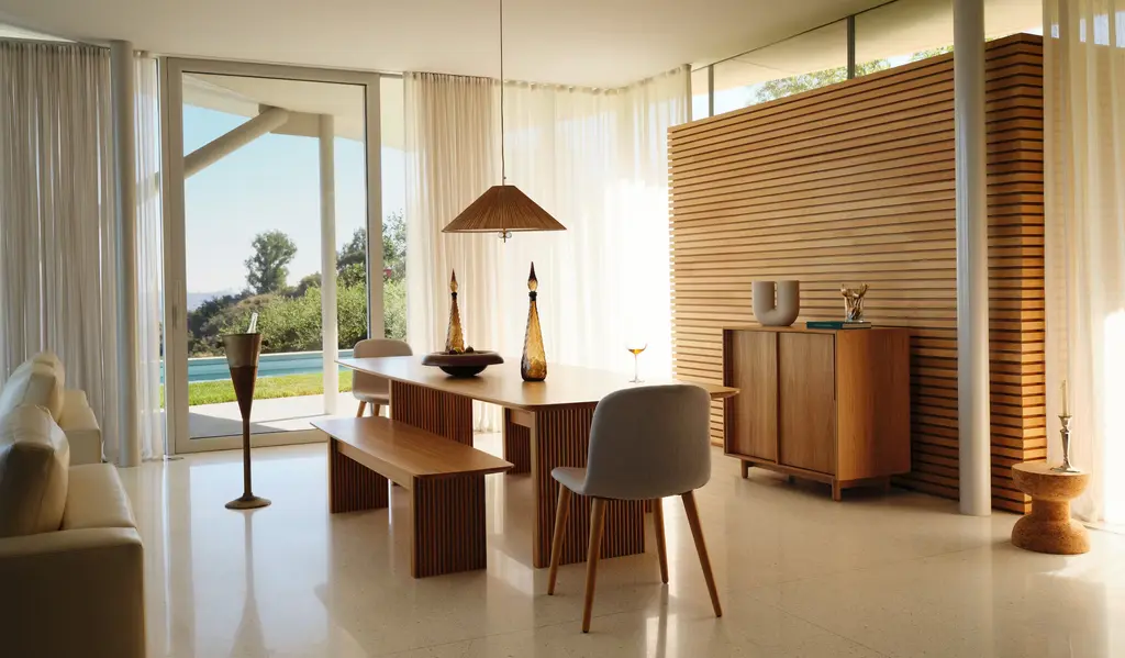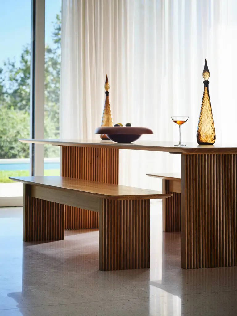 Add flexible seating to any table with the spacious and versatile Ten Bench (2023). Designed for DWR by Danish design studio dk3, this sophisticated bench stands out for its refined details. Featuring vertical grooves, each plinth-like leg is crafted from 10 individual pieces of solid wood, hence the bench's name. It's finished with an organically shaped, softly rounded veneer top that exemplifies dk3's master craftsmanship. Pairs elegantly with the Ten Table (sold separately) and many other DWR tables, or use it in a hall or entry. Made in the Czech Republic.