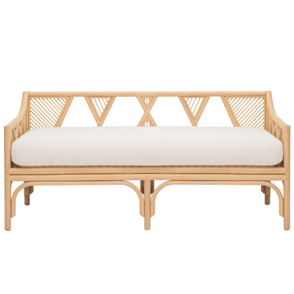 The Thatcher Natural Rattan Bench is a stunning addition to any space, meticulously hand-wrapped in natural rattan. Its water-repellent and stain-resistant fabric ensures durability and easy maintenance, while the Palm Springs-inspired design infuses a beachy vibe. Perfect for both covered outdoor areas and indoor settings, this versatile bench brings elegance and relaxation to your home.