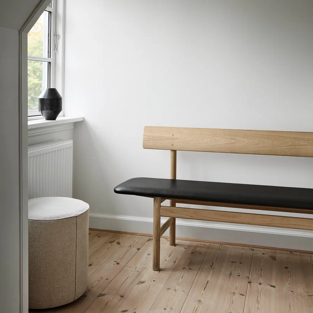 A Midcentury impresario of Danish Modern, Børge Mogensen created his namesake wood bench in 1956 and it endures as a testament to the designer's lifelong drive for a clean, essential shape. With its impression of robust simplicity, the seating features construction in solid oak, notably including the back which is made from a single piece of timber. With an extensive range of leather and fine fabric upholstery options, the seat is made of plywood core and layered with high resiliency foam.