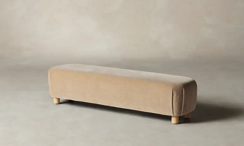 The Perry Bench carries mid-century Scandinavian design influences into the home with its soft shape and pleated details. Tight upholstery and blind seams lend the design a smooth finish. Handcrafted in North Carolina.