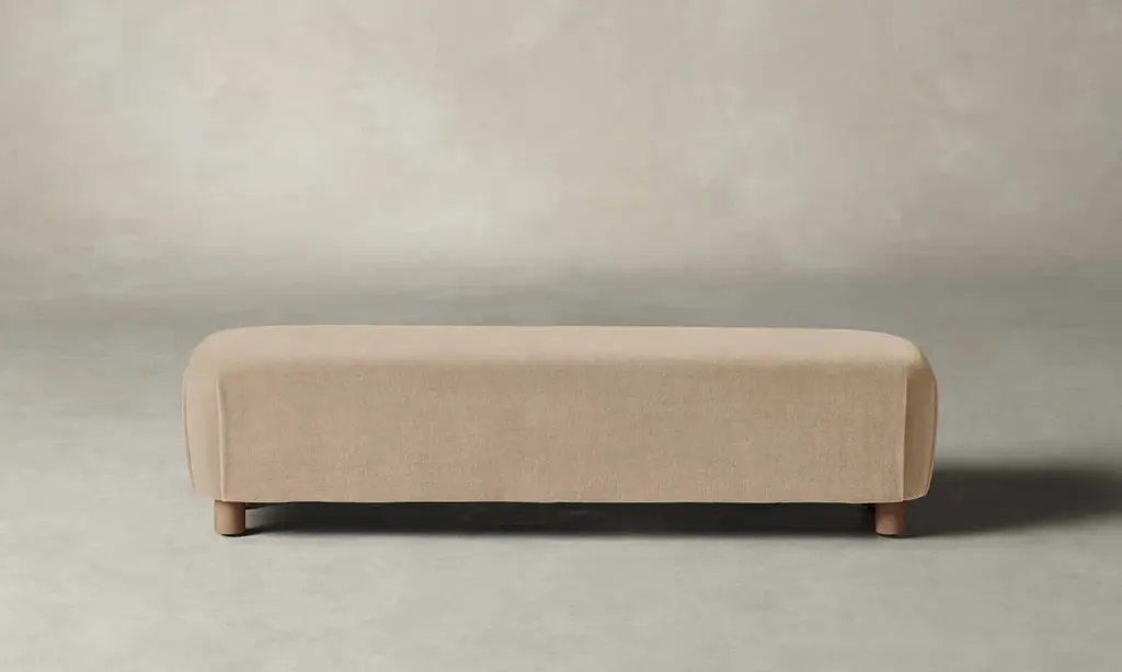 The Perry Bench carries mid-century Scandinavian design influences into the home with its soft shape and pleated details. Tight upholstery and blind seams lend the design a smooth finish. Handcrafted in North Carolina.