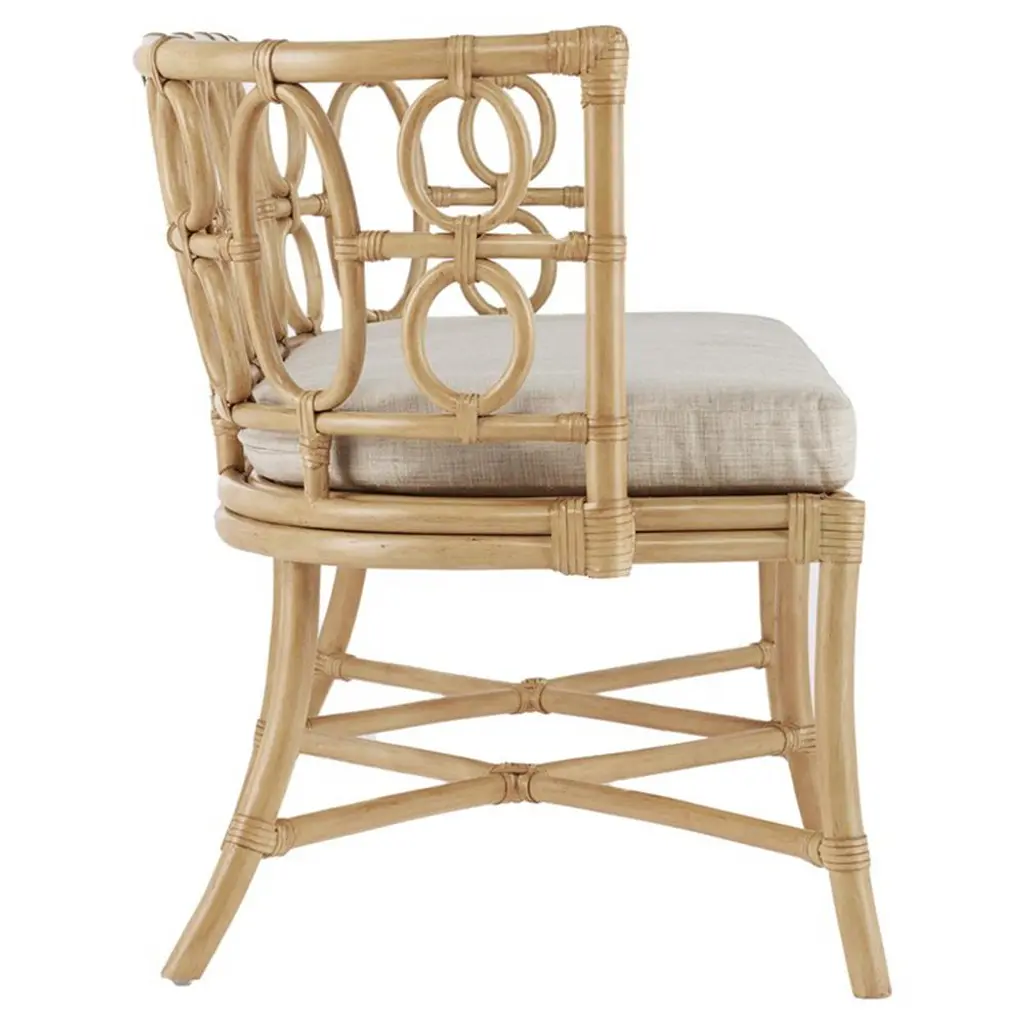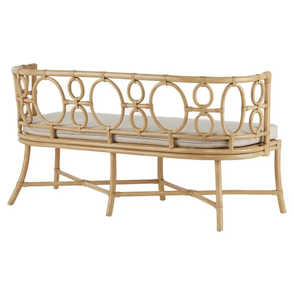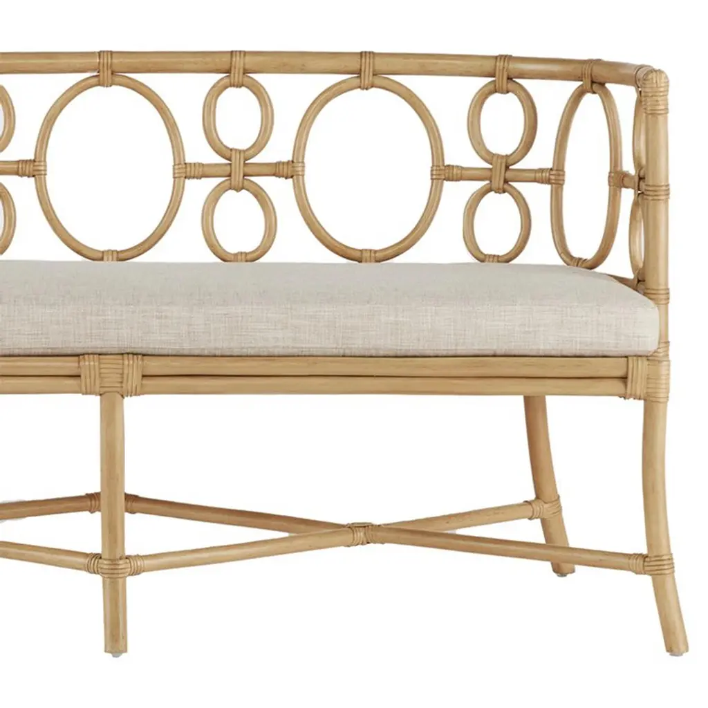 Theo Coastal Beach Beige Upholstered Natural Rattan Bench