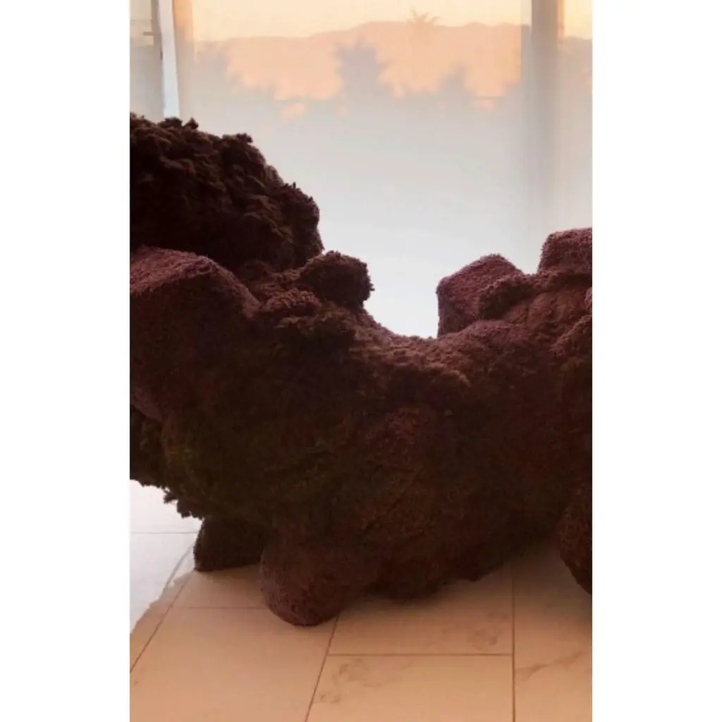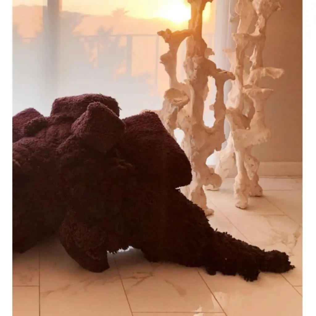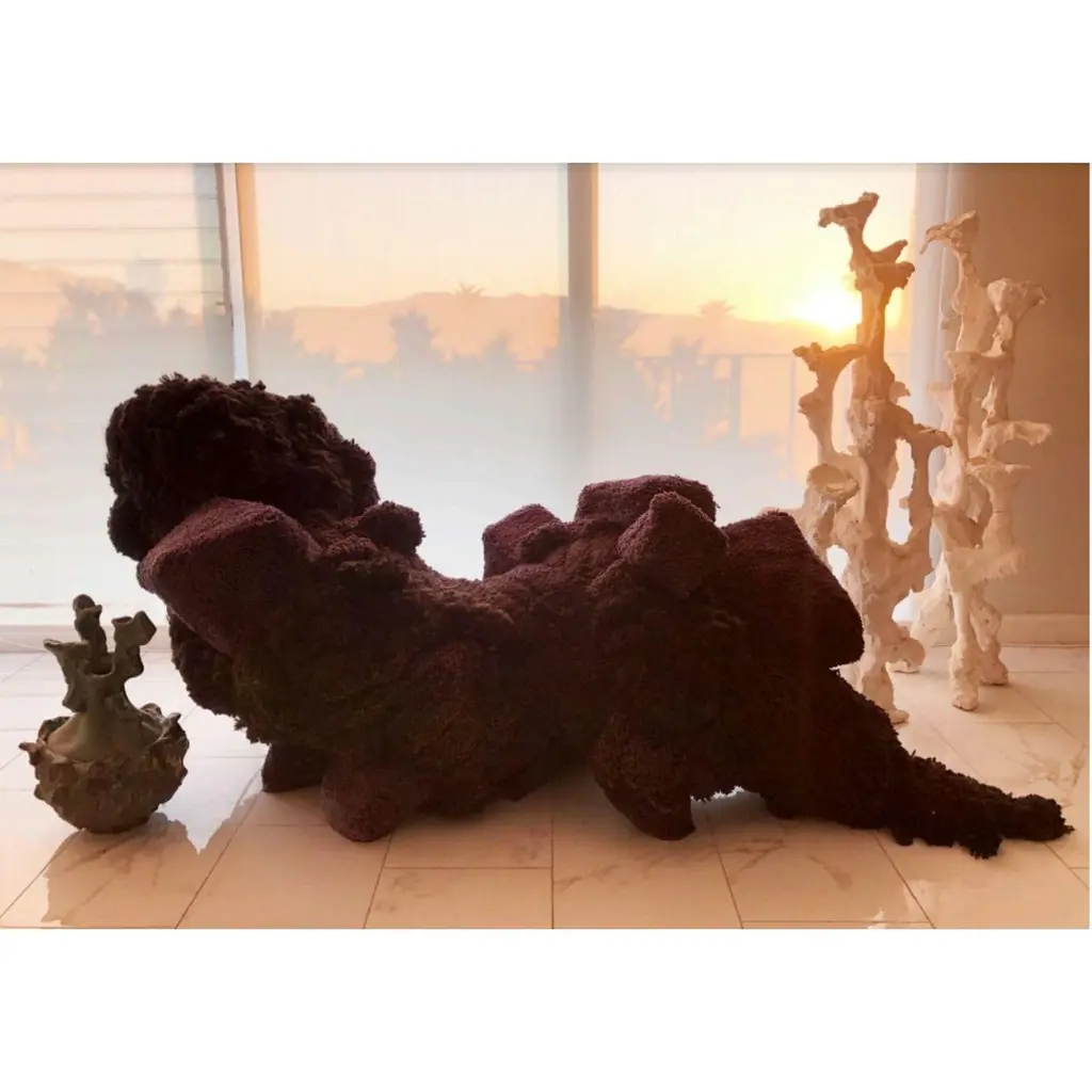 There and black sculptural bench by Mary BroggerUnique piece.Dimensions: D 84 x W 196 x H 81.5 cm.Materials: Hand-tied acrylic yarn, mixed media.Unique sculptural bench. Variations made to order.Mary Brogger is an internationally recognized artist whose diverse practice includes sculpture and site-responsive installation, as well as art direction, prop making, fashion, furniture, and light fixture design. Brogger's knowledge of the history of art and design, along with her refined and accomplished use of materials, provide the visual richness, technical agility, and conceptual cohesion that characterize her practice. Until relocating her studio to Los Angeles in 2009, Brogger served as an instructor in the Sculpture and the Fiber and Materials Studies Departments at the School of the Art Institute of Chicago. She is a recipient of distinguished awards from the National Endowment for the Arts and the Illinois Arts Council and has been nominated for awards and fellowships from the Richard H. Driehaus Foundation, the Louis Comfort Tiffany Foundation, and Anonymous Was a Woman. Brogger's work has been exhibited internationally and is held in many distinguished private and public collections including the Museum of Contemporary Art, Chicago.