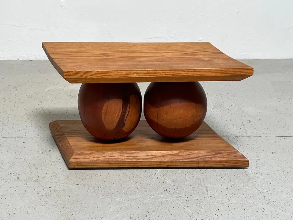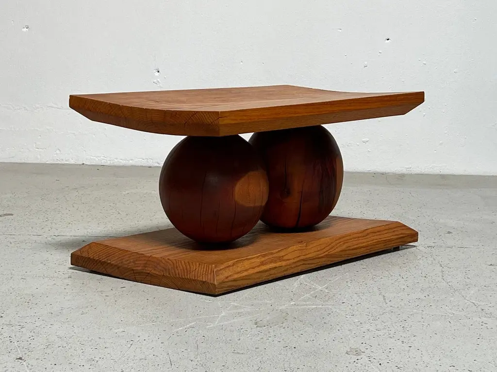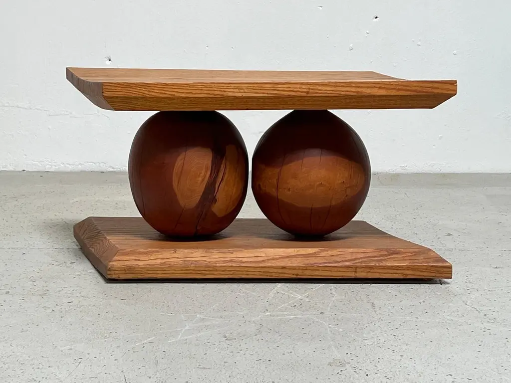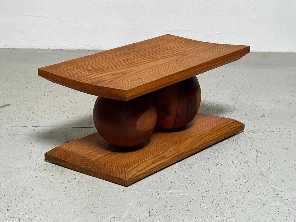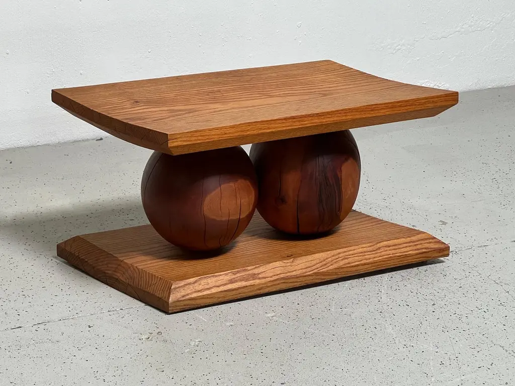An oak and cherry studio craft bench made by Thomas Lacagnina, 1974. Tom Lacagnina received his BFA in 1970 and MFA in 1974 from the Rochester Institute of Technology. From 1969-1970 he worked as a studio assistant to Wendell Castle. He was the recipient of a Fulbright scholarship in 1975. From 2000-2022 he served as Professor Emeritus, School of Art and Design, New York State College of Ceramics, Alfred University, Alfred, New York. Through the 1980s and 90s his work was exhibited throughout the United States and shown at several prominent galleries. In 1990 he received a National Endowment for the Arts fellowship and in 1995 received the New York Foundation for the Arts Fellowship.
