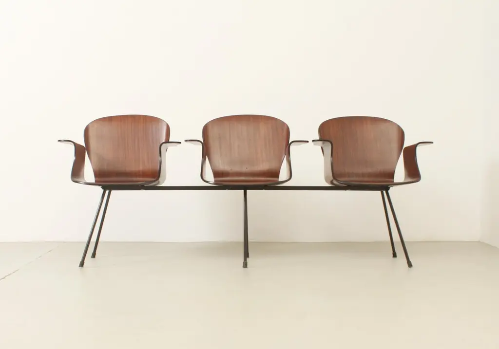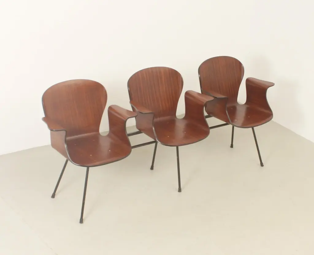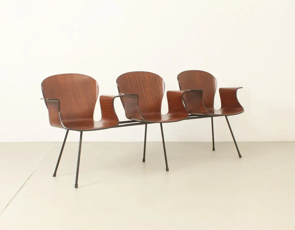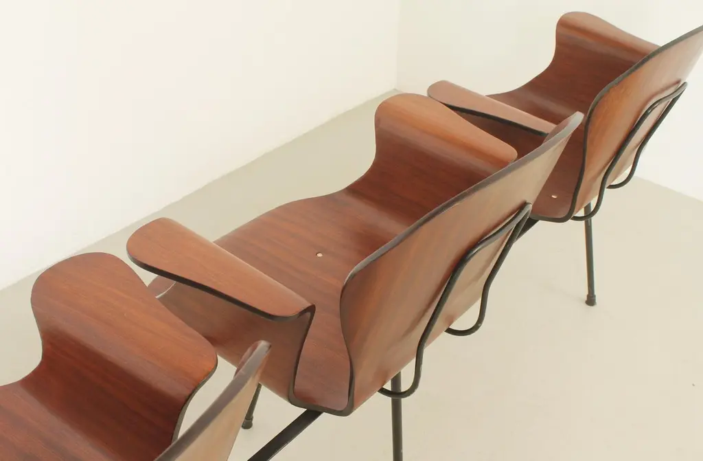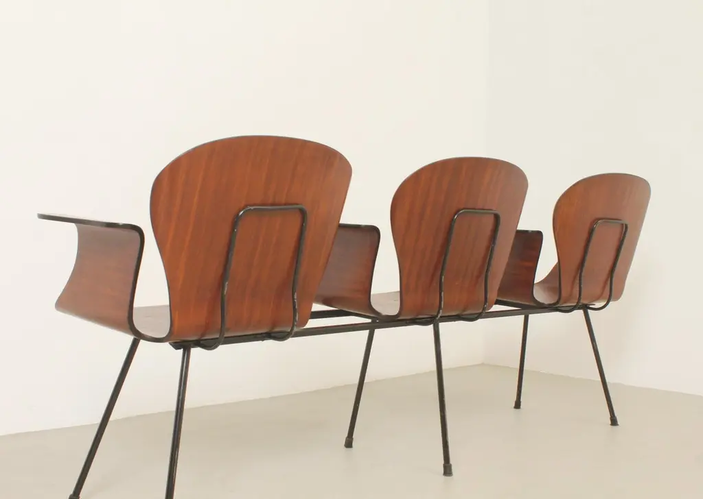 Three Seater Plywood Bench By Carlo Ratti, Italy, 1950's