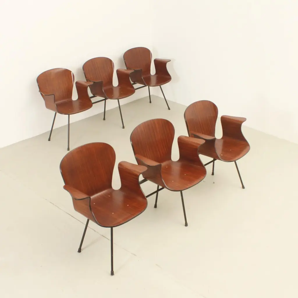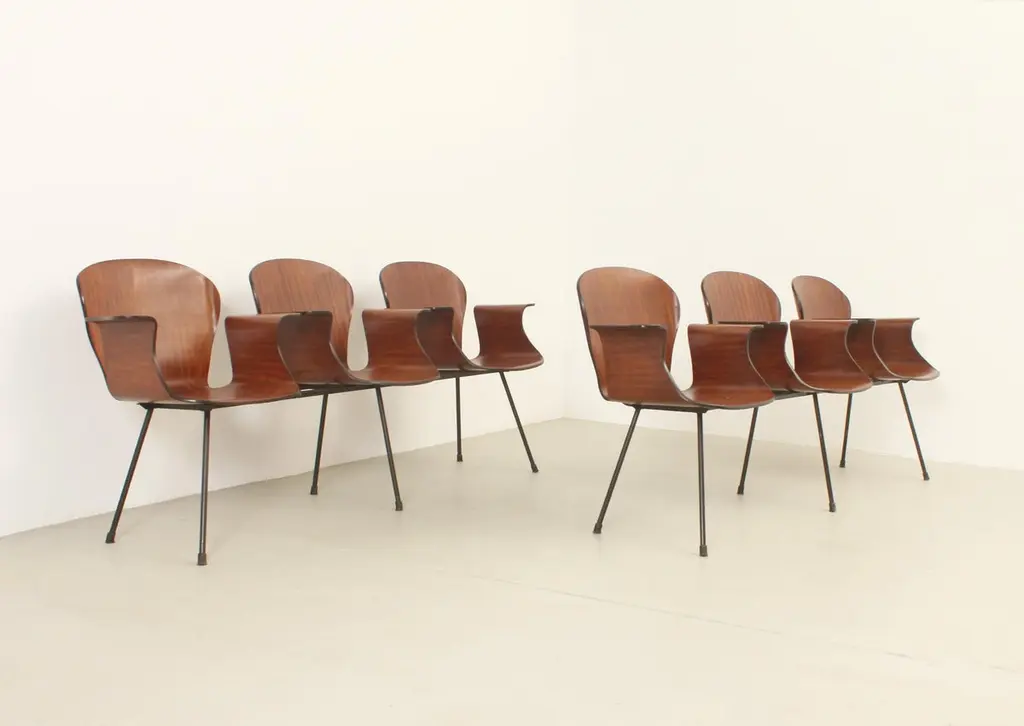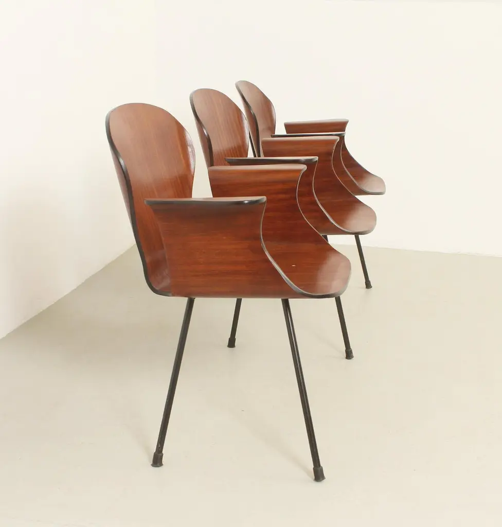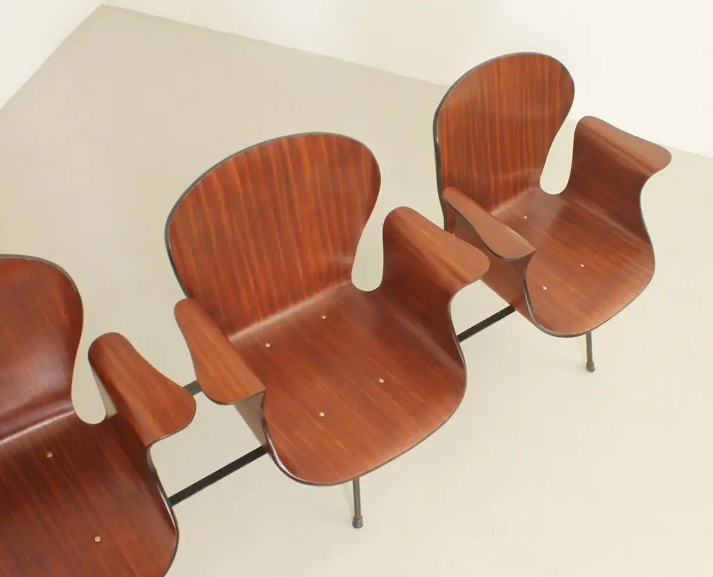 Three Seater Plywood Bench By Carlo Ratti, Italy, 1950's