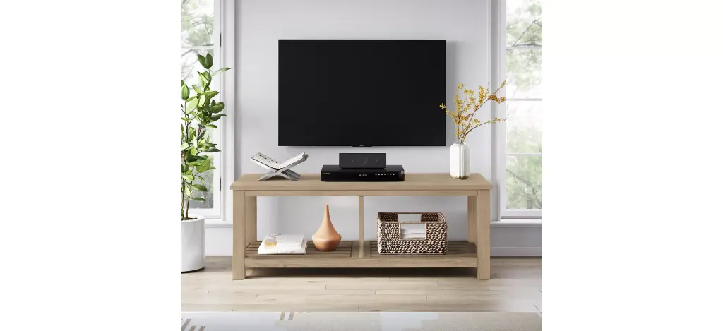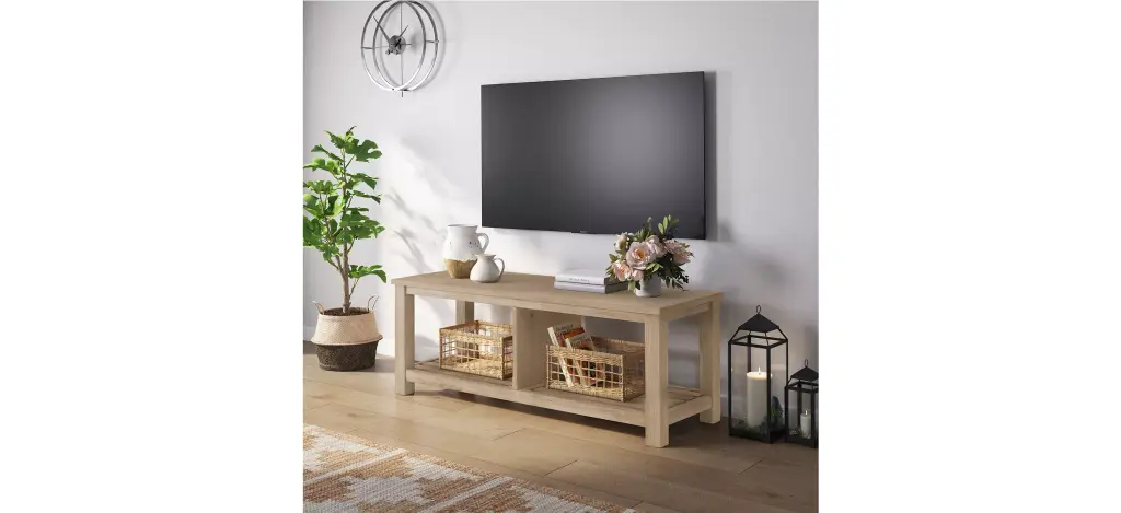 Modern Minimalist, the Tiburon TV Bench is ideal for 44" - 48" TV size. It's refreshed in a light wood tone that strikes a balance between cozy simplicity and Japandi aesthetics. Designed to work with modern to transitional decor.