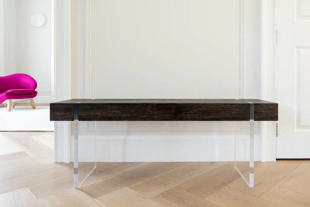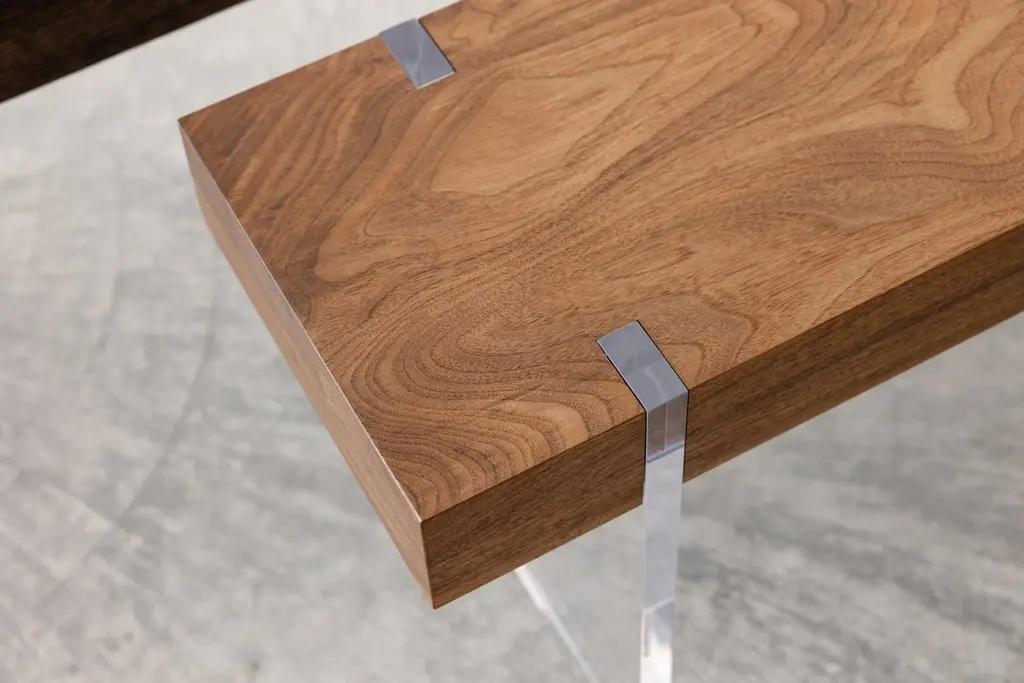 Tillikum Walnut Bench With Clear Acrylic Legs By Autonomous Furniture