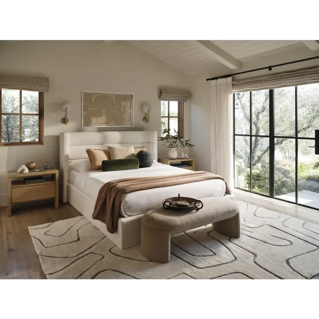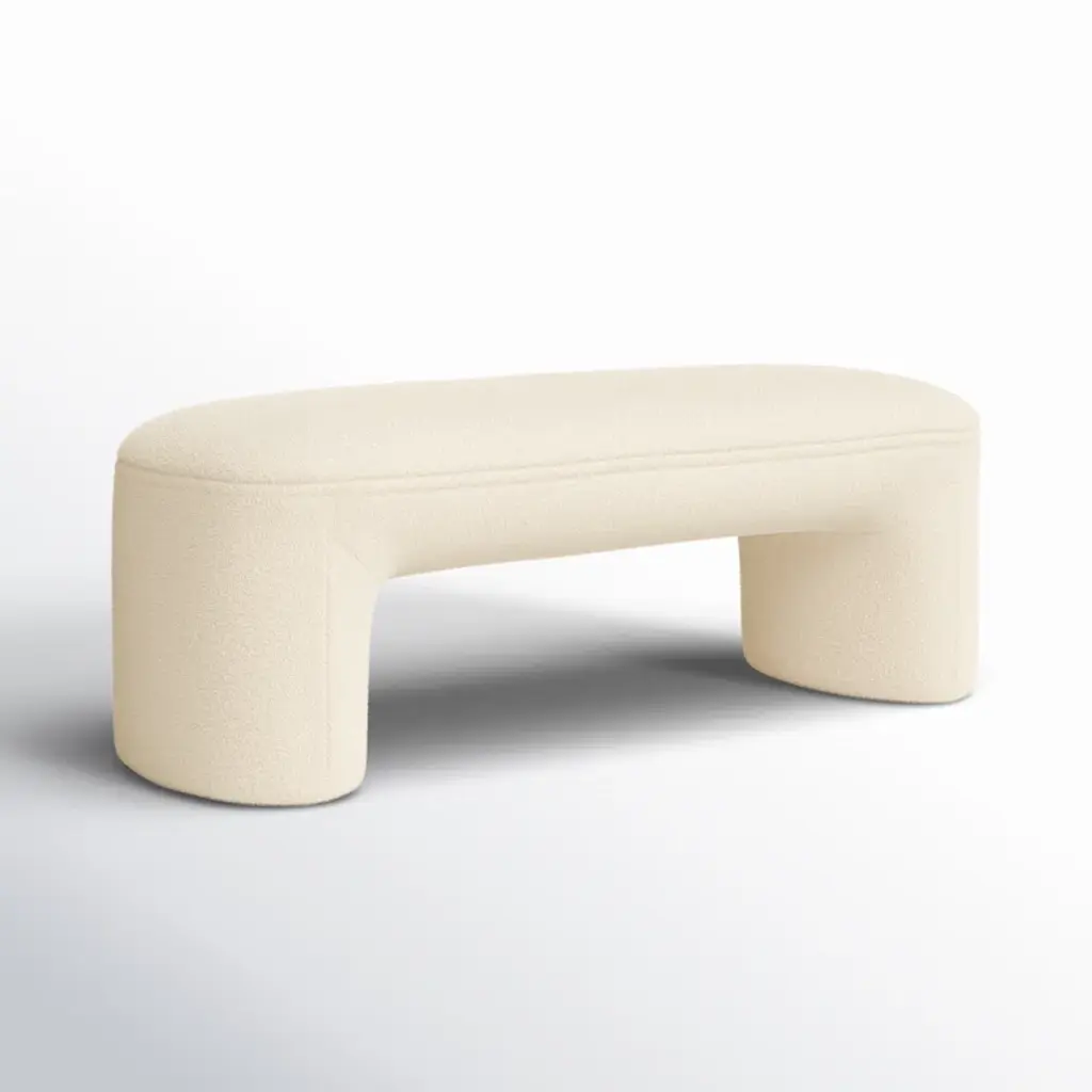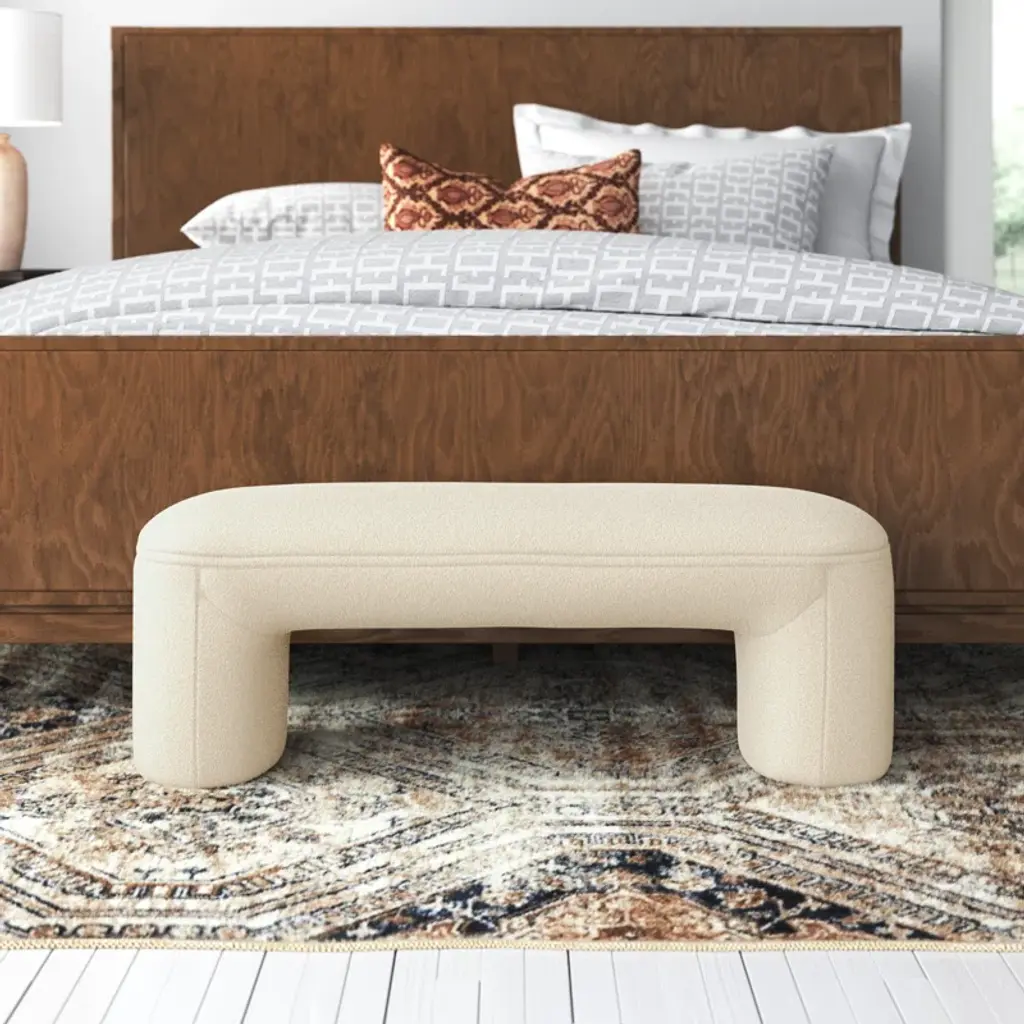 This bedroom bench is your new go-to for trendy seating with a twist! Upholstered in polyester, it features a rounded seat that flows into curved sled legs, crafted from a blend of solid and engineered wood. Its tan shade makes it a versatile piece, perfect for adding flair to your bedroom, entryway, or dressing room. With seating for two, it's ideal for morning chats or evening relaxation. Place it at the foot of your bed for a statement that’s both stylish and functional.