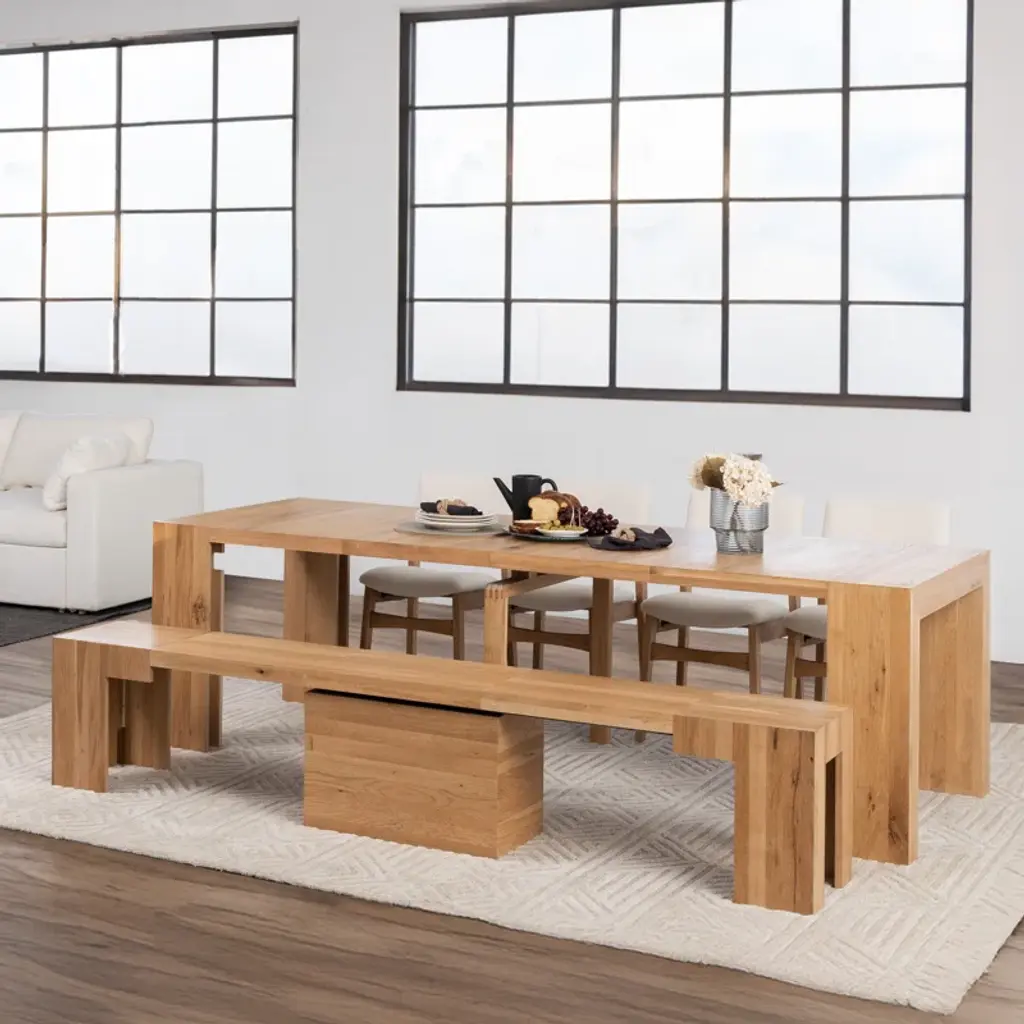 Expandable & Adjustable Seating – This solid wood bench extends from 2 ft to over 11 ft, seating 1 to 6 people, making it perfect for small spaces, family dinners, and large gatherings.
