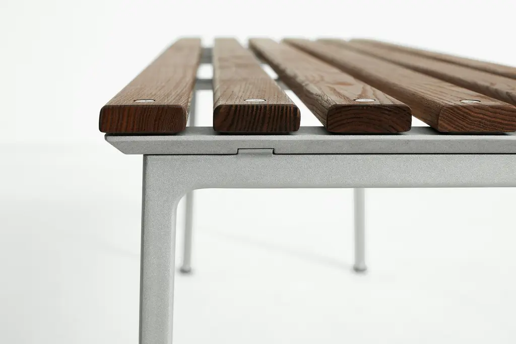 Designed by frequent HAY collaborator Erwan Bouroullec, the Traverse Bench (2025) brings a graceful yet robust beauty to outdoor entertaining. Its contoured aluminum frame supports heat-treated ash wood slats designed to beautifully patina over time. Inspired by the public benches of 19th-century Paris, the refined yet utilitarian bench is ready to entertain in any setting - from urban courtyards to country gardens. Made in China.