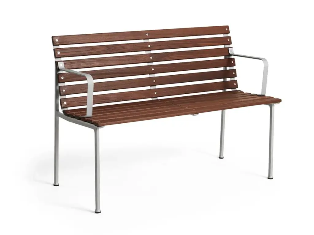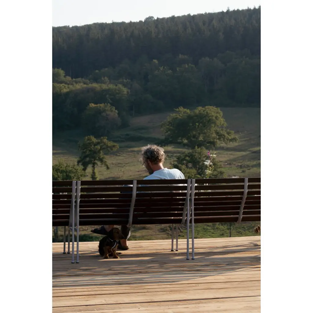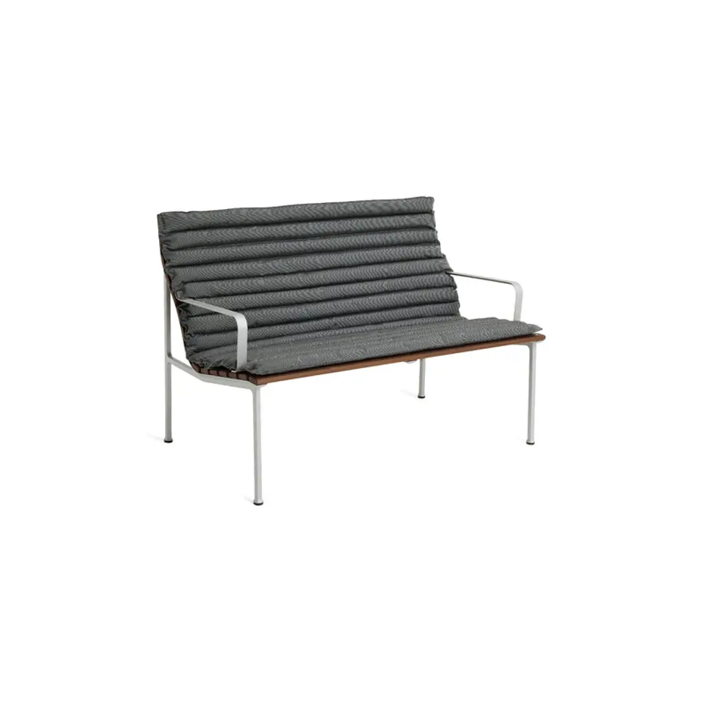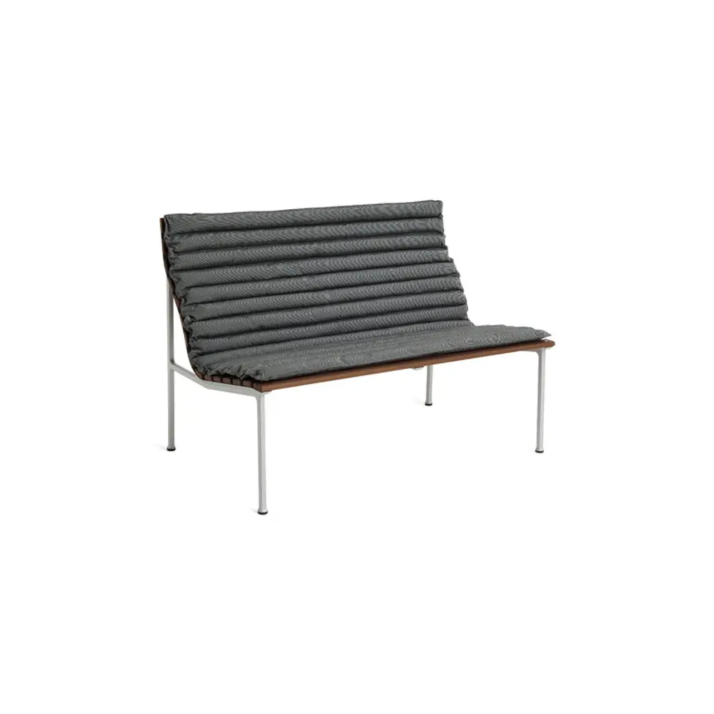 HAY's Traverse lounge bench brings together soft, flowing shapes and the rich texture of heat-treated ash, making it a natural fit for any outdoor space. Created by French designer Erwan Bouroullec, this outdoor lounge bench adapts effortlessly to its surroundings, whether nestled in a lush garden or placed on a sleek urban balcony. Over time, the heat-treated ash develops a beautiful silver-gray patina, blending even more seamlessly into its surroundings. For added comfort, you can pair the Traverse bench with a separately sold seat cushion. HAY's Traverse patio furniture is crafted from two strong, weather-resistant materials: a lightweight lacquered aluminum frame and solid heat-treated ash. This chemical-free treatment, achieved with steam and heat, enhances the wood's moisture resistance and strengthens it all the way to the core. The process gives the naturally light ash a dark surface, which gradually ages into a soft gray hue under exposure to UV light. To minimize packaging size, the furniture is delivered in parts.
